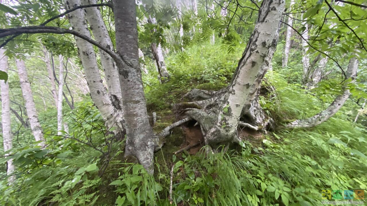 Нижний водопад, как и положено, встретится первым (N48°23,739' E142°40,640'). Его высота около 23 метров. Падая, поток значительно расширяется к низу, растекаясь по уступам скалы. Добраться до него проблем не составит. На нём же советую остановиться геокешерам с детьми, а также людям со слабым здоровьем - дальше путь совсем небезопасный вне зависимости от наличия/отсутствия сапог.