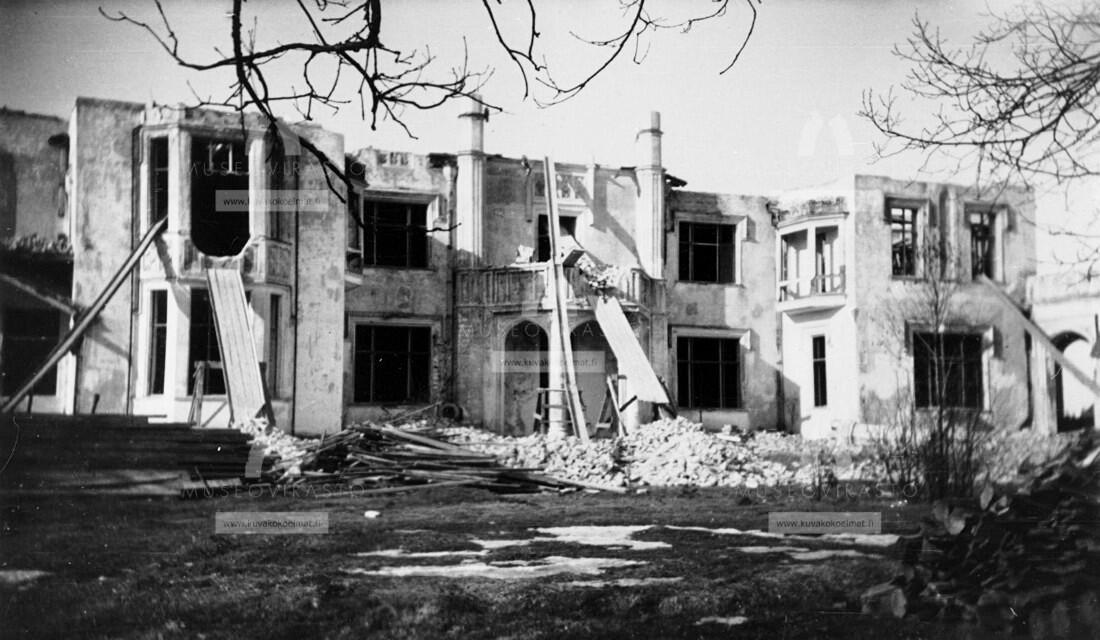 Но в 1931 году производство пришло в упадок, и Салтыков продал предприятие акционерному обществу «Выборгский лесопильный завод». К тому же, после смерти супруги годом ранее, он переехал во Францию. Его новая жена Нина, ставшая вскоре вдовой, несколько раз приезжала в Перкъярви, чтобы распродать остатки графской собственности. Так здание усадьбы «Савикко» было продано общине Муолаа и частично разобрано на стройматериалы. Финские крестьяне не знали, что делать с огромным дворцом и попросту стали разбирать его на стройматериалы. Кирпич от усадьбы активно использовался при строительстве церкви прихода Эюряпяа, тоже полностью разрушенной во время Зимней войны в 1940 году. До настоящего времени руины салтыковской усадьбы просматриваются с противоположного берега озера. Сейчас, к сожалению, осталась только арка главного входа с башней, напоминающей минарет. Вторая башня, по свидетельствам, которые удалось найти в интернете, обрушилась около 10 лет назад.