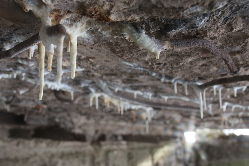 Интересны металлические балки, которые тут служат арматурой. В основном, это рельсы, на некоторых из них сохранились цифры 1879, 1881 (года? Или какие-то друге обозначения?) и клейма заводов Круппа – оттуда немецкая армия снабжалась сталью в годы первой мировой войны.