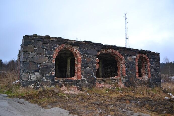 Корпуса старых финских приусадебных конюшен в поселке Рюттю. Стены двух корпусов, построенных в конце XIX века, сложены из камня, еще один, более современный корпус из кирпича. А изначально здесь была усадьба Сомероя, принадлежавшая супругам Халлонблад, видным общественным деятелям Сортавала. Потом у остатков усадьбы было несколько перерождений. Здесь располагался телятник, детский приют и даже приют для душевнобольных. Последнее, что здесь было при советской власти - конюшни ФГУП «Племенной совхоз Сортавальский».