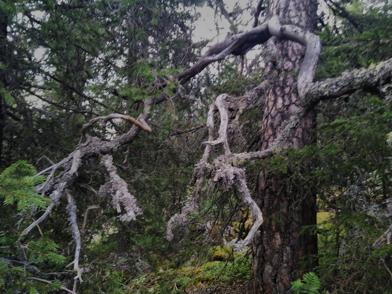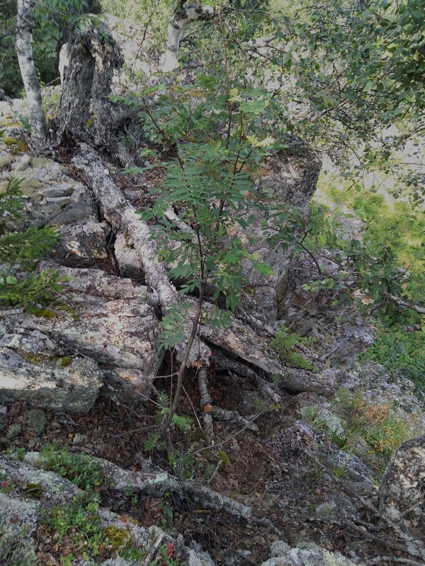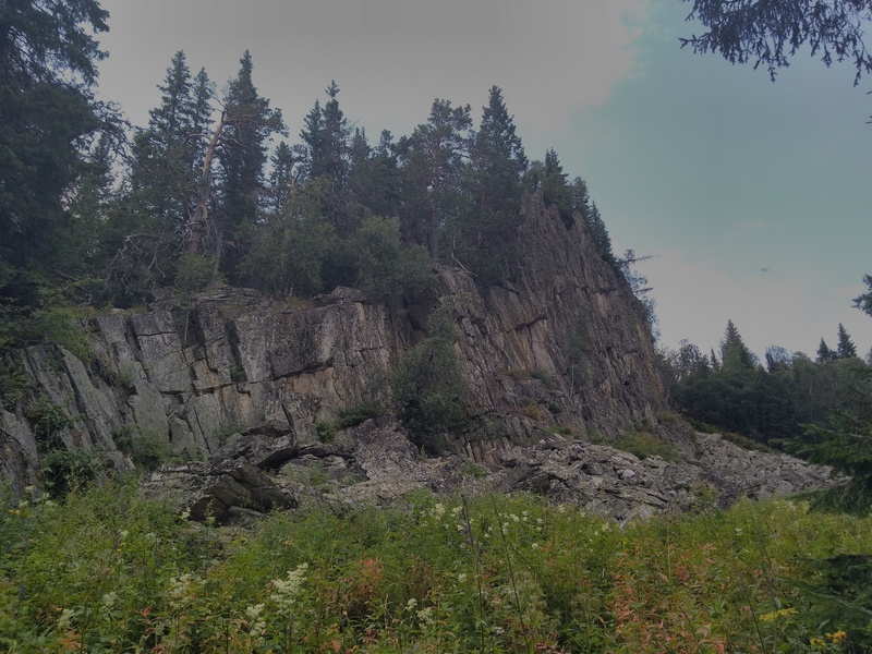 Столбы - главная вершина одноименного хребта, её высота составляет 1026 метров. Название вершина и несколько скал в её окрестностях (Большие и Малые Столбища, Ближние Столбы) очевидно получили за высокие отвесные скалы. На вершине на момент закладки тайника ещё сохранились деревянные остатки старой триангуляционной вышки. Сама вершмна, помимо отвесных скал, богата ягодой (черникой и брусникой) и шикарными видами на окрестности. Подъём на вершину не сложен, если не штурмовать её "в лоб" - нужно найти правильный подход. Вся трава под скалами сильно истоптана местными обитателями - дикими зверями, также встречаются следы их лёжек.