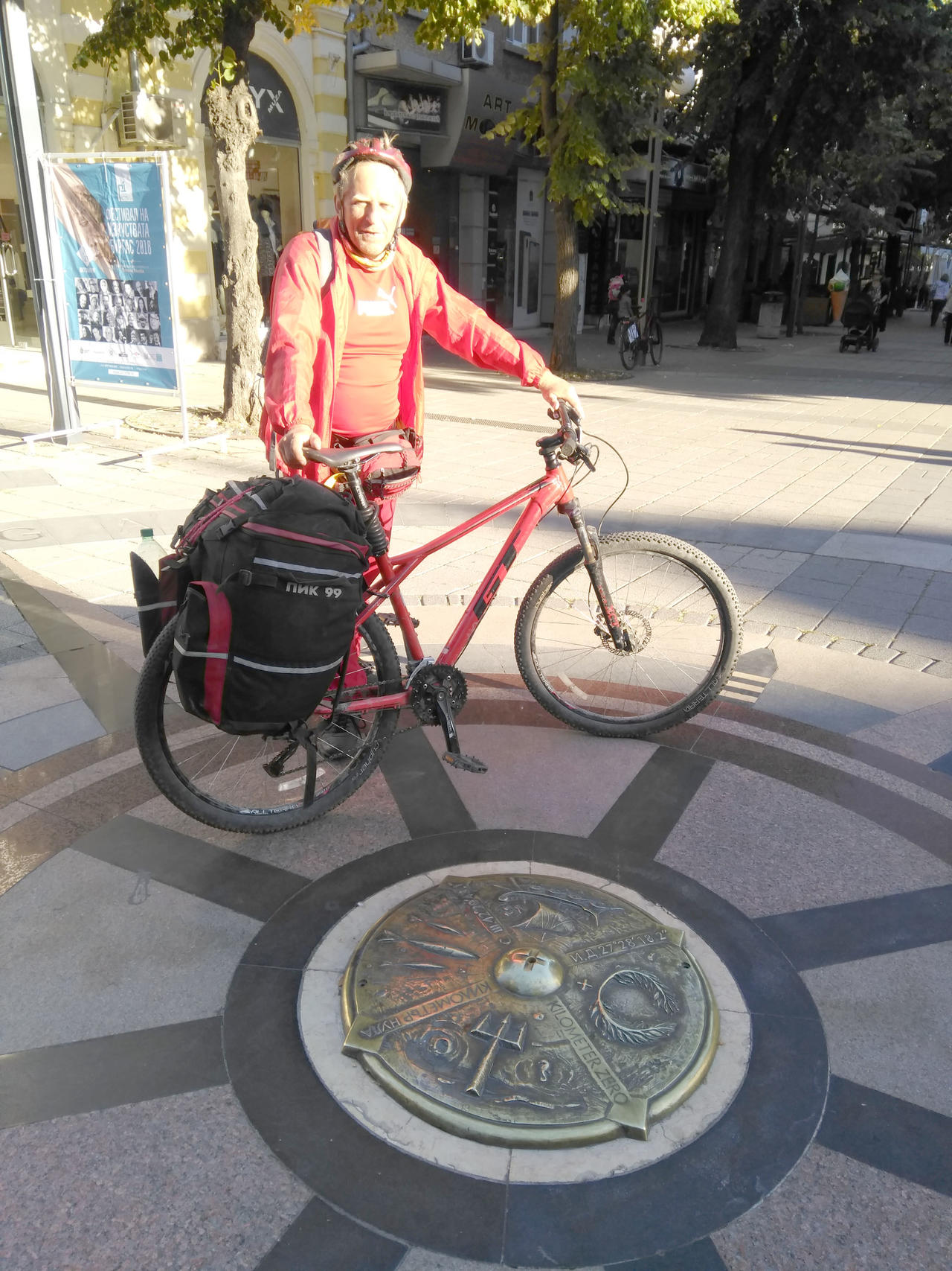Географический центр города находится на пешеходной улице Александровска и отмечен рельефной плитой с изображением основных геральдических символов города: корабля, лаврового венца, рыб и трезубца. Кроме того, на плите выбиты точные координаты места – широта и долгота с точностью до долей секунды. Окружен мозаикой в виде компаса, точно указывающего своими лучами на четыре стороны света. Именно от этого места измеряются расстояния до разных точек города и до других городов Болгарии, а не от главпочтамта, как это принято в российских городах.