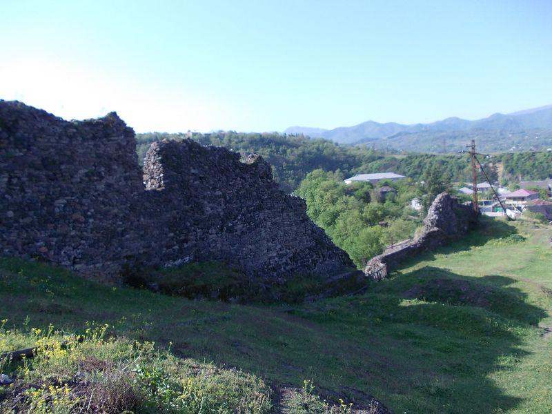 ...Потом с согласия оного Соломона граф Тотлебен с командой пошел прямо к крепости Шорапани, которая построена из дикого камня на высокой горе, наподобие большей башни, при речках Дзирула и Квирила, и от столичного города Кутаиса половины дня, а от Черного моря два дня езды. И прибили к оной 3 числа сего месяца, в котором находятся двадцать три турков в гарнизоне, а жители оной за две недели до прибытия команды, оставя предместье, вошли в крепость же, ибо в здешней стороне за три месяца слух дошел, что из России тридцать тысяч войска в Имеретию посланы. По прибытии ж к оной крепости, Соломон чрез имеретийца велел туркам объявить, что российская армия пришла, и ежели они без сопротивления отдадут крепость, без всякого вреда отпущены будут, куда сами пожелают. И на сие отвечали, что они верные рабы султана, и затем крепость, которая им вверена, должны защищать до последнего человека и, не видя еще опасности, отдать не могут. И между тем Соломон получил известие, что князь Дадиан, собравши в своем владении четыре тысячи войска, да к тому ж с ним и до тысячи турок находится, принадлежащие Соломону деревни разоряет, а людей теснит; что услыша он того ж 3 числа с двумястами имеретийцами поехал к нему навстречу (...) ...но Соломон в наш лагерь еще не прибыл и находится от крепости Шорапани один день езды. При отъезде ж своем просил графа Тотлебена ту крепость взять, и для довольствия ж команду провиантом и фуражом оставил брата своего католикоса и трех князей, и хотя они всеми мерами стараются, но силы их к тому недостает, ибо во всей Имеретии, как Соломоновом, Гуриэловом, Дадиановом, так и Эристовом владении, пшеничного хлеба весьма мало сеют, (...) Сто верст имеретийскую землю проехал и ныне на такой высокой горе при крепости Шорапани лагерем стоим, что почти вся Имеретия видна, и состоит она окружена со всех сторон высокими горами, на коих местами беспрестанно снег лежит, и по всей Имеретии леса одни и горы, а поля, где б порядочно на ровном месте команду лагерем расположить можно было, не видал; в лесах же местами растут винные ягоды, каштаны, виноград, яблоки, груши и другие овощи, и лес по большей части буковой. Имеретийцы вовсе время зимою и летом довольствуют лошадей полевым кормом, сена не имеют, а, вместо ячменя и овса, просом. Деревнями называют—где по одному, по два и по три двора построены, и то в самых высоких горах, и такие деревни от деревни — расстоянием пять и десять верст, и строение их состоит на подобие шалашей без печей и окон. Соломон ни одного города и местечка неимеет, а турки находятся в четырех местах его владения, то есть Кутаисе, столичном городе всей Имеретии, где считают одних поселян турков пять сот дворов, которые кроме купечества и свое землепашество имеют; потом в крепостях Шорапани, Багдади и Цуцхвати.