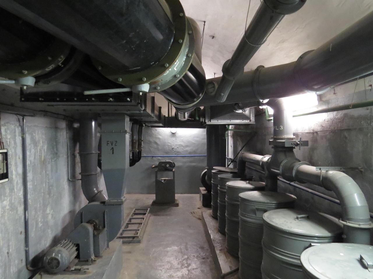 Бункер оснащен обширной системой вентиляции. В системе 3 узла для вентиляции и фильтрации воздуха, каждый из них способен обрабатывать до 1000 куб.м. воздуха в час. Фильтры поглощают пыль и большинство частиц, загрязняющих воздух, а также некоторые отравляющие вещества. В случае отключения электричества каждый узел может работать от ручных генераторов - ручки генератора крутило бы по 2 человека, меняющихся каждые 15 минут.