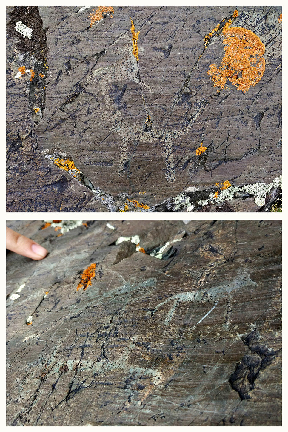 Петроглифы в долине реки Елангаш - памятник наскального искуства скифского периода и двернетюркского. Рисунки высечены на округлых камнях, отшлифованных ледниками плейстоценового периода и изображают сцены охоты, а также животных - лось, конь, баран, як, верблюд и т.д. Долина была в древности частью пути в Монголию и, возможно, в ней отдыхали караваны после перехода через Южно-Чуйский хребет.