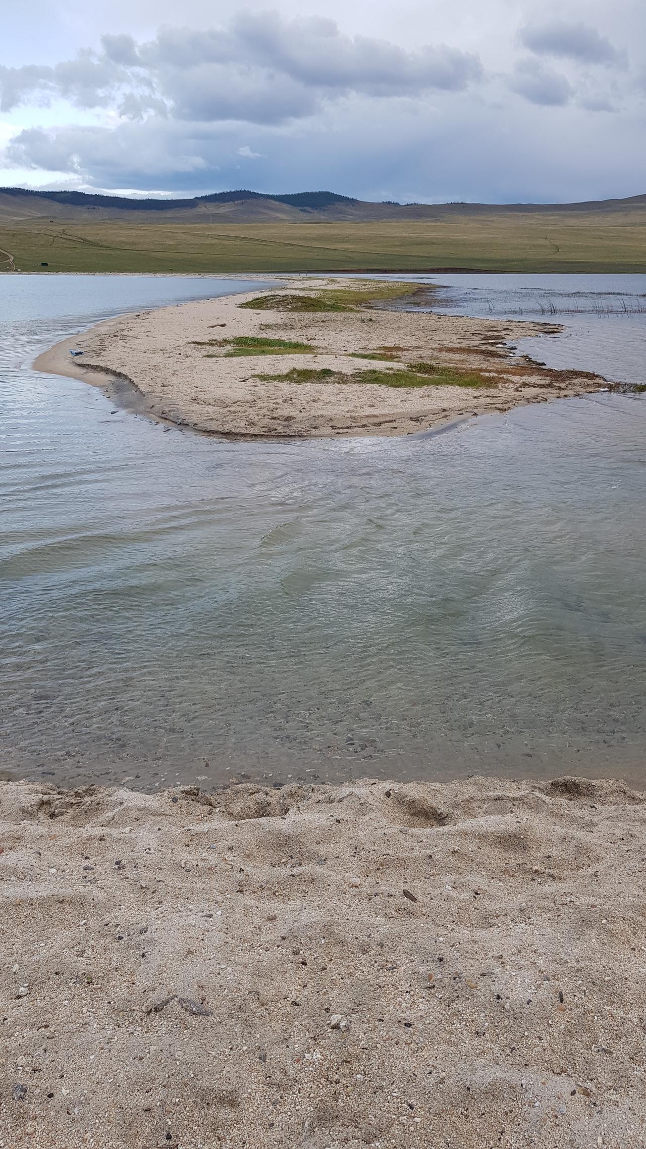 Ранее озеро Ханхой являлось заливом Байкала. В настоящее время с востока оно отделено от Байкала наносной песчаной косой (вход на косу запрещен! там живут растения - эндемики - прим. aekuzn) . В северной части косы располагается впадающая в байкальскую бухту Елгай узкая протока шириной 1-2 метра и глубиной не более 30 см (на самом деле около 80-100, перешла туда-обратно - прим. aekuzn). С севера озеро отделено от Байкала скалистой грядой, плавно спускающейся в Ханхой и круто падающей в Байкал.