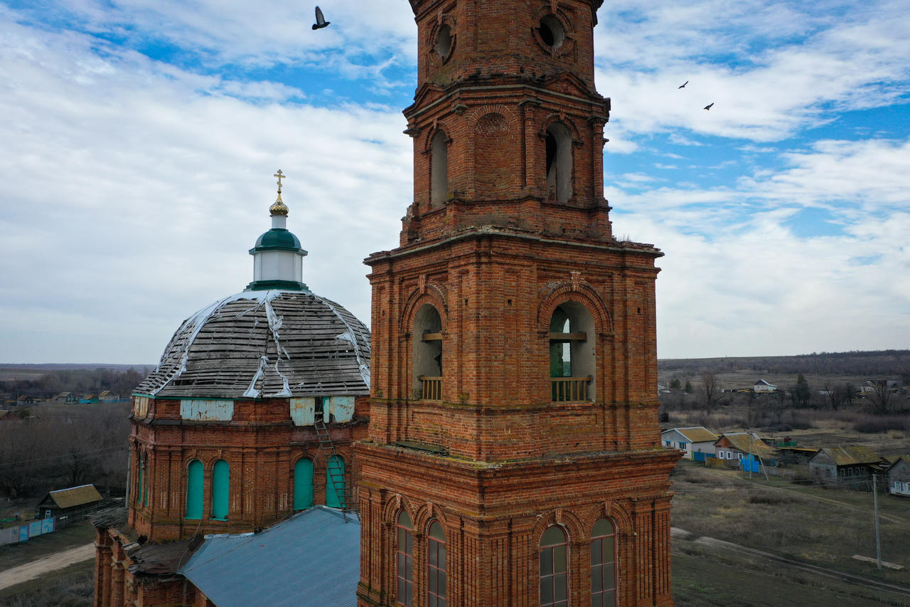Строительство церкви Дмитрия Солунского было начато в 1913 году рядом со старым деревянным храмом и закончено в 1916 году. По другим сведениям Дмитриевская церковь была заложена в конце XIX века, освящена была в начале XX века, а общее время строительства составило около 15 лет. В строительстве использовали местную глину, добываемую из котлована, вырытого на месте, где сегодня расположена школа. Для обжига кирпичей построили печи. В цементный раствор добавлялись яйца и молоко для крепости.