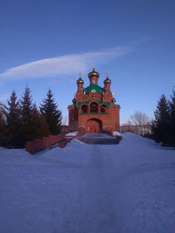 Арки и своды храма построены из красного кирпича. На храме — семь куполов, символизирующие семь таинств и семь вселенских соборов. Ещё три купола — символ Святой Троицы расположены на звоннице. Купола собора обшиты металлом золотистого цвета, покрытым нитридом титана. Кровля храма была изготовлена в городе Новосибирске по специальной технологии из оцинкованного железа, покрытого полимерной плёнкой. Главный крест над собором возвышается на 51 метр от земли. Всего в храме 9 колоколов (по числу ангельских чинов). Самый большой колокол весит 1024 кг, самый маленький — 4 кг.