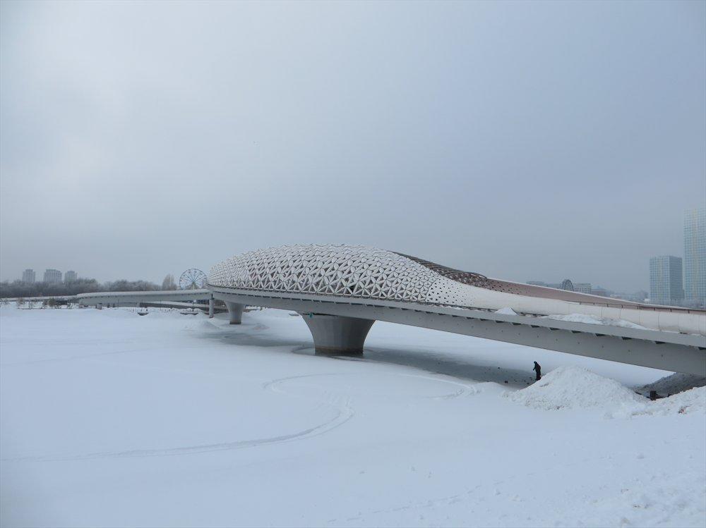 По замыслу инженеров и архитекторов этот мост обеспечит связь пешеходных потоков и велосипедной сети парковой зоны и набережной линии правого берега реки Есиль.