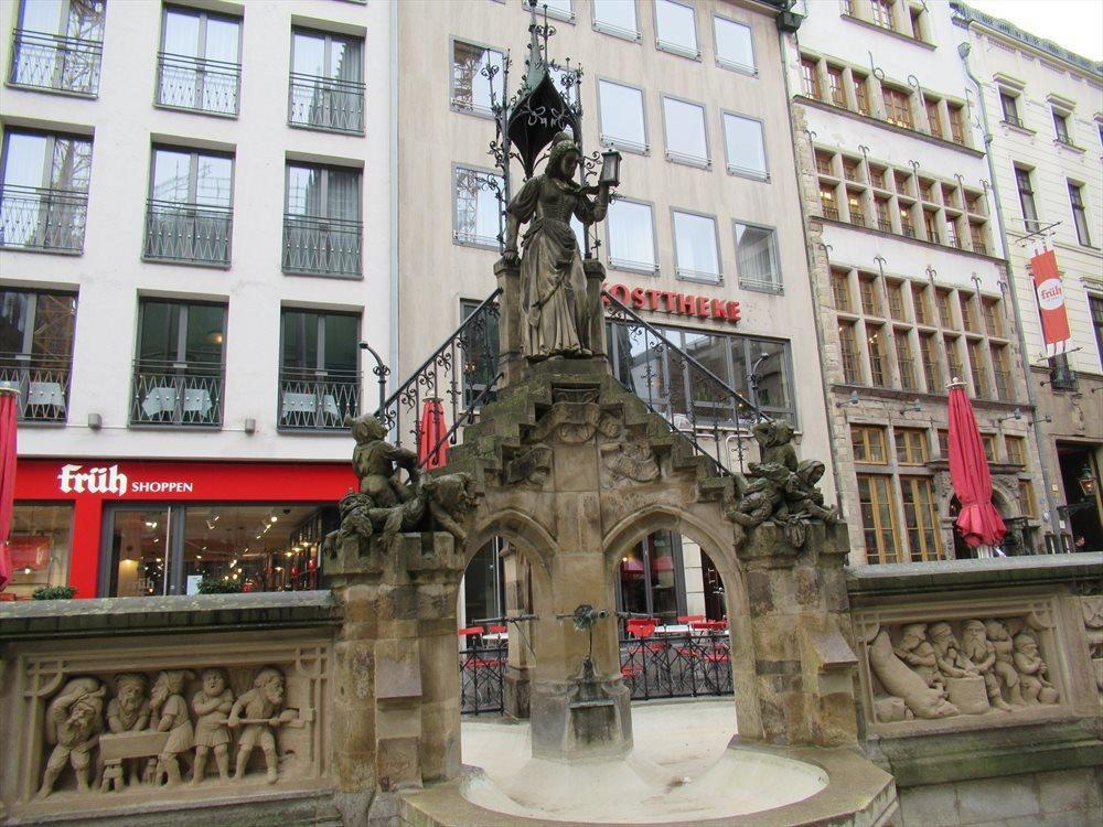 Это не памятник, а целый фонтан (Heinzelmännchen-Brunnen). Эта скульптурная композиция, посвященная гномам, была создана в XIX веке. Здесь они представлены в виде добрых мастеровых, каковыми были отражены в народной легенде. Домовые кому только не помогали — плотникам и мясникам, пекарям, пивоварам...