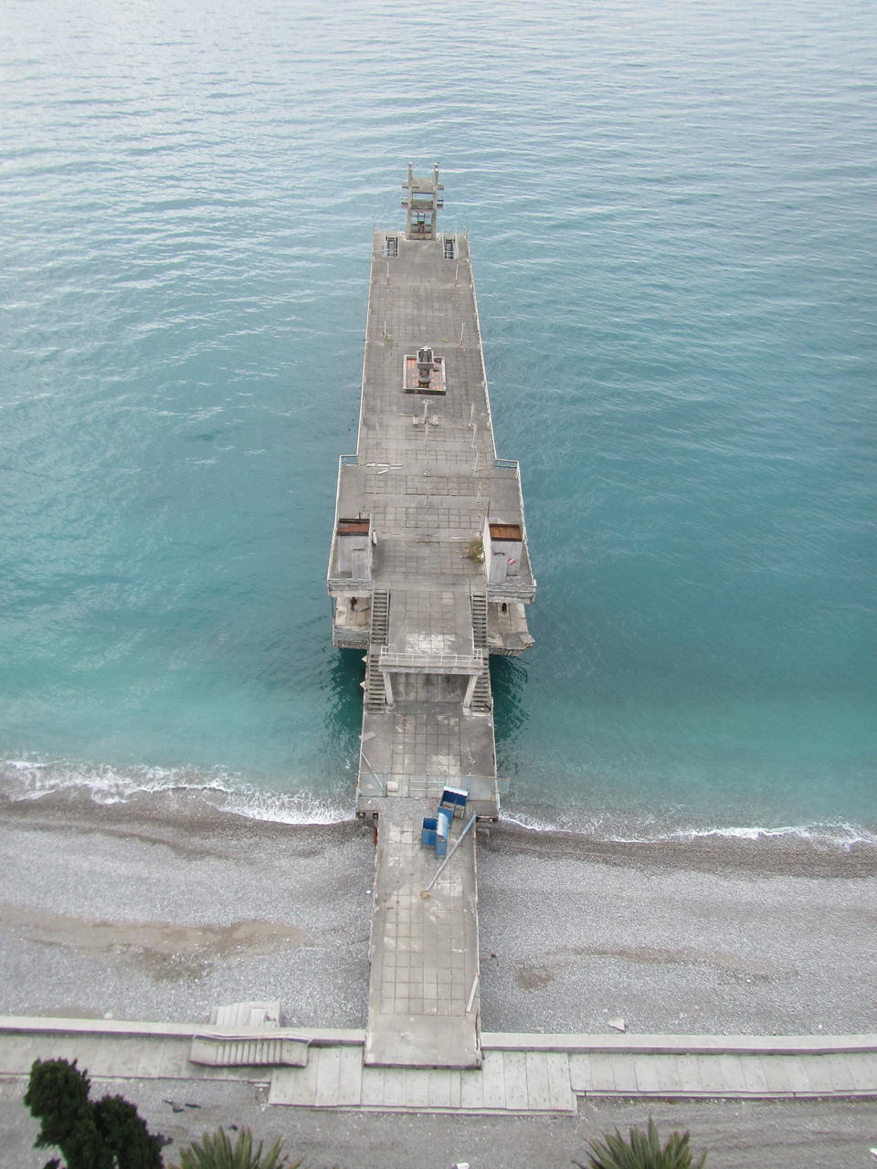 Уникальный, единственный в Абхазии лифт, ведущий на пляж, продолжал работать круглосуточно, пока не сломался, однако, в конце 2017 был отремонтирован – появились импортные кабинки взамен устаревших советских. Пирс изрядно просел и на момент посещения был весьма аварийным, хотя впоследствии тоже был восстановлен, невзирая на стоимость.