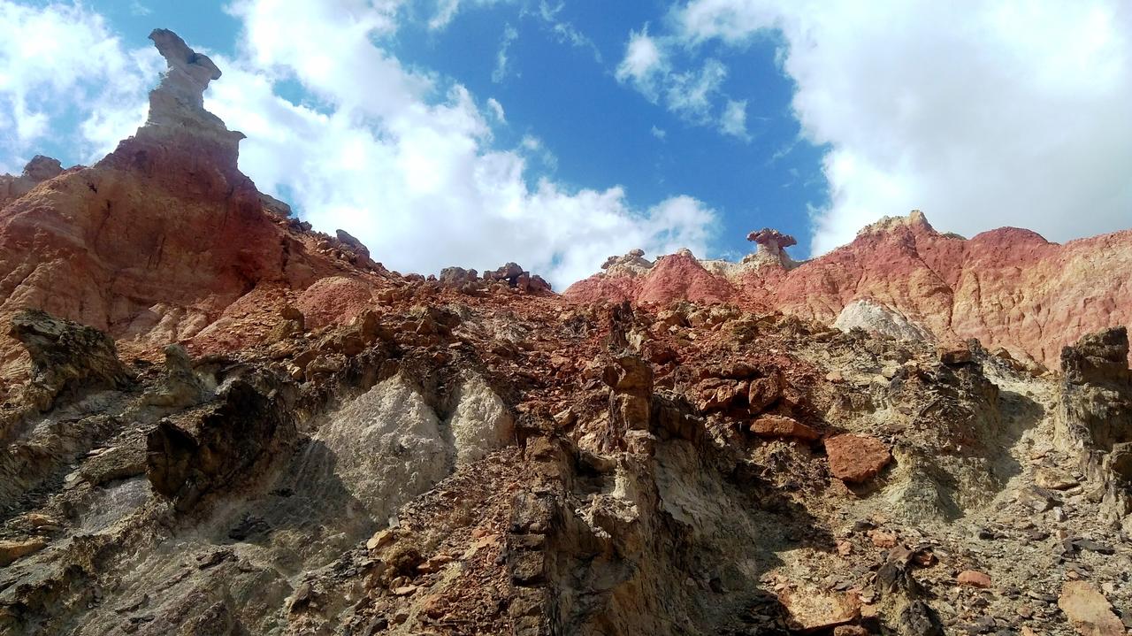 Эти удивительные по своей красоте скалы и горы, покоряющие своим величием и своей безжизненностью, с фантастическими каньонами и разноцветными склонами, напоминающими многослойный пирог, образовались много миллионов лет назад. Тогда по Земле бродили динозавры, а на том месте, где сейчас высятся эти горы, бушевал древний океан Тетис. Давно уж отступил океан, обнажив свое дно… Вода и ветер за миллионы лет сделали свое дело: слабые породы выветрились и вымылись, и на всеобщее обозрение предстала удивительная панорама гор, причудливо изрезанных эрозией, — со сказочными фигурами на фоне нереального, «лунного» ландшафта…