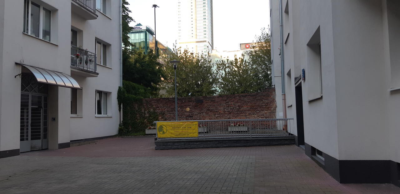 Во время прогулок по городу обратите внимание на встречающиеся на тротуарах встроенный металлические таблички с надписью по-польски и по-английски :"MUR GETTA GETTO WALL 1940-1943", там тоже проходила такая кирпичная стена.