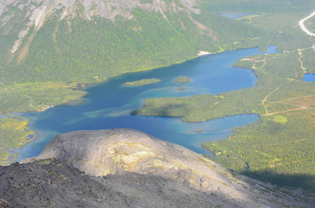 На одну сторону – вид на озеро Малый Вудъявр, откуда и началось наше путешествие. На другую сторону – озеро Имандра и ближайший к Кировску город Апатиты.