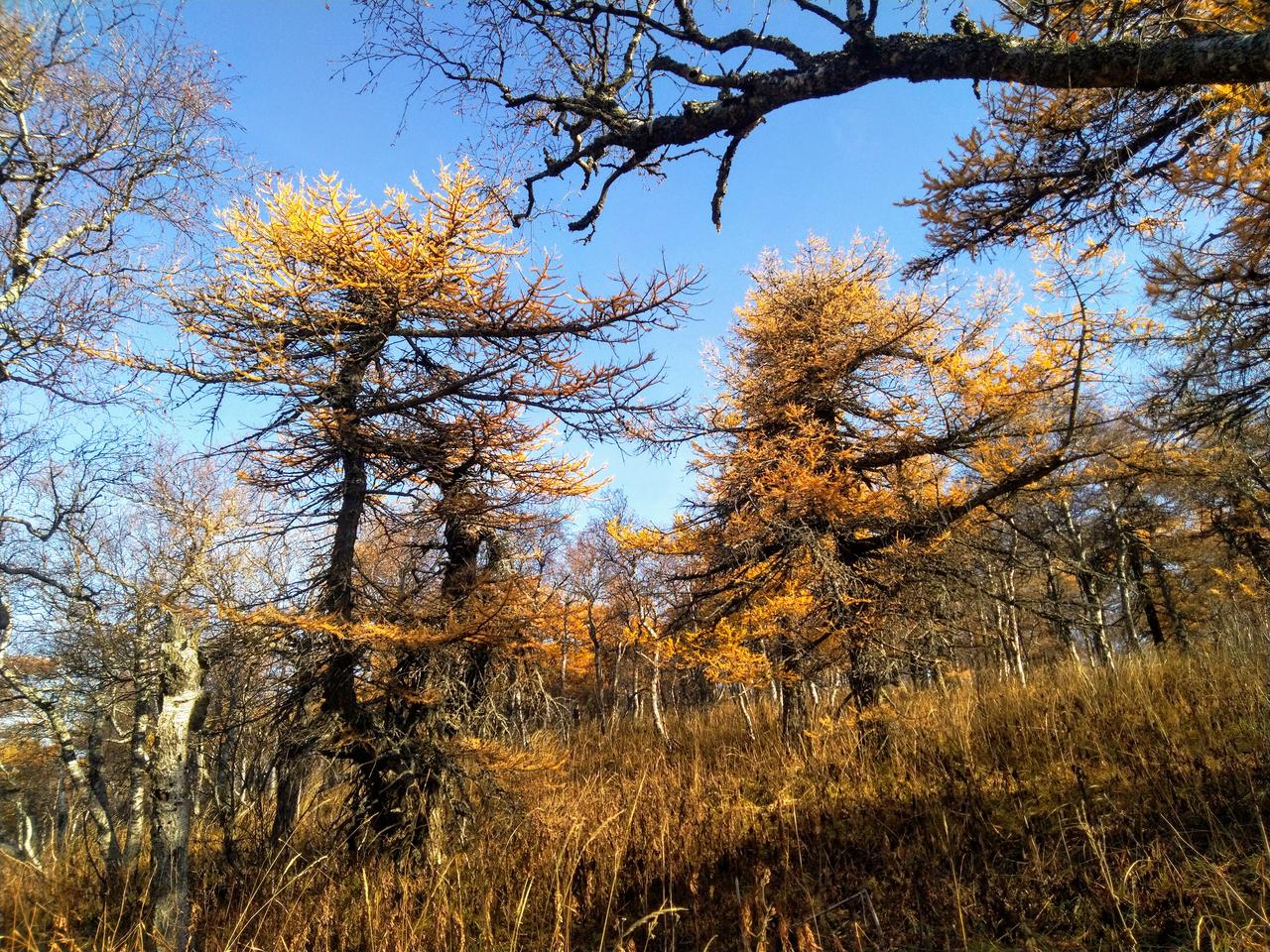 Преобладающими породами деревьев на плато являются лиственница и берёза (карликовая). Много открытых пространств с хорошим обзором.