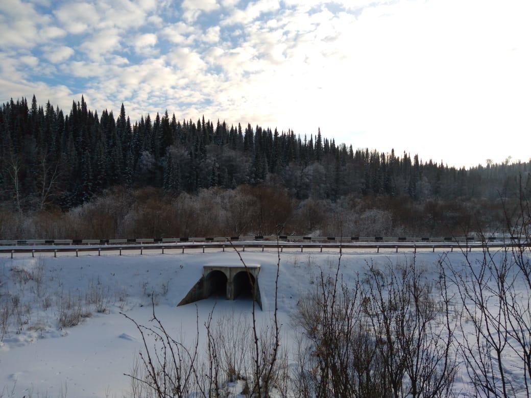 Река Полдневая - приток Суенги. Автомобильная дорога Конево-Маслянино идет по Матвеевскому хребту Салаирского кряжа и пересекает реку Полдневая примерно на 38 километре, если ехать со стороны Конево. Река протекает в Новосибирской и Кемеровской областях. Согласно данным водного реестра, устье реки находится в 57 км по левому берегу реки Суенга, длина реки составляет 24 км. Над рельефом речных долин в этих местах совместно работают бобры и золотодобытчики, но места невероятно живописные, характерные для Салаирской глубинки. Место в районе моста отмечено драматической тайной. На склоне справа и немного выше от беседки стоит одинокий памятник, обращённый лицом к мосту.