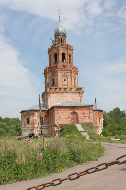 Построен храм одиозной личностью своего времени, князем М.П.Гагариным, о чем говорит горделицая надпись на верхнем восьмерике. Князь был при Петре I губернатором Сибири, прославился своими хищениями и мздоимством, был вызван в Петербург, судим и повешен перед окнами Юстиц-коллегии.