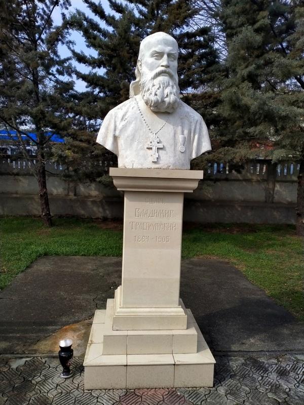А рядом установлен бюст священномученика Владимира Троепольского. Он с 1891 по 1898 год был настоятелем храма, и прославлен Архиерейским Собором Русской Православной Церкви Заграницей в ноябре 1981 года. 28 июля 2019 года Священный Синод внес в Церковный календарь Украинской Православной Церкви день памяти священномученика пресвитера Владимира Троепольского.