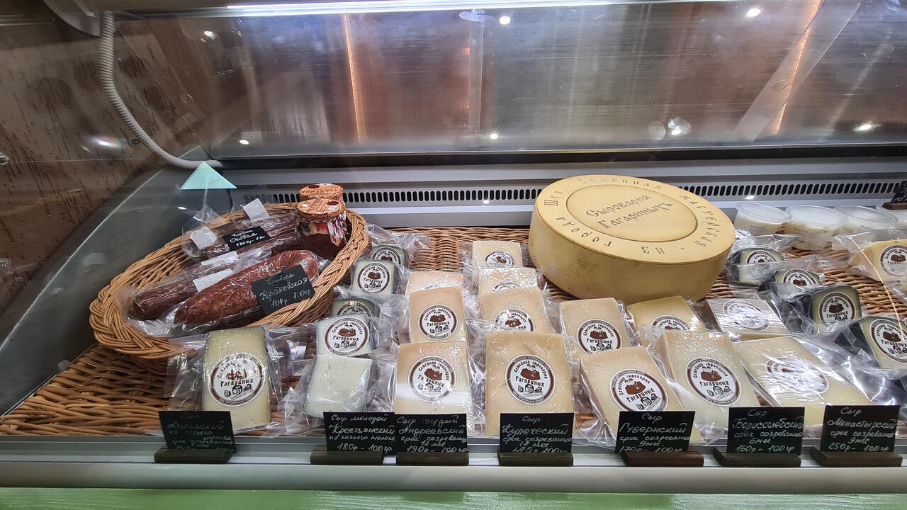 В небольшом магазинчике фермерских продуктов при сыроварне можно приобрести товары и других производителей.