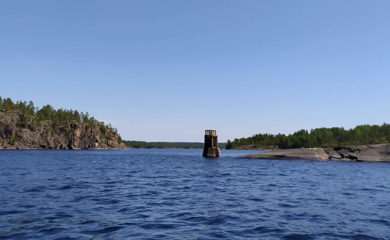 Здесь на всем протяжении пролива во времена добычи камня на острове установлены бетонные навигационные знаки для обеспечения прохождения судов через пролив. Сами они выглядят не типично для шхер. Нужно сказать, что створные знаки установлены не случайно, так как пролив изобилует мелями, подводными камнями и «лудами» опасными в первую очередь для моторных судов. Навигационные знаки (маяки) в настоящее время находятся в запустении, к ним можно аккуратно подойти и высадиться на малом плавательном средстве. Тайник подразумевает водное путешествие, хотя существует теоретическая возможность посещения тайника по суше.