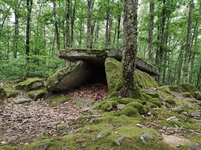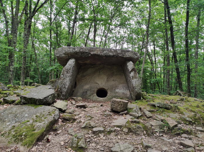 Дольменов на Кавказе много, а в окрестностях Пшады их количество просто зашкаливает. Иной раз они стоят группами, образуя "дольменные города". Сохранились далеко не все, многие лежат в руинах и покрыты мхом, даже не всегда сразу ясно, что перед Вами именно остатки дольмена.