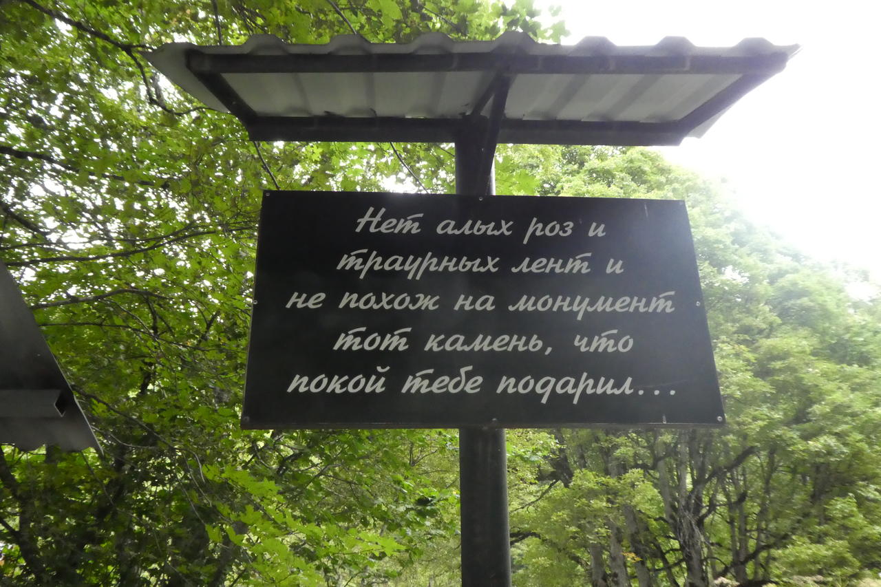Это место обладает сильнейшей энергетикой. Уделите минутку своего времени, отдайте дань уважения светлым, жизнелюбивым людям, память о которых навсегда увековечена среди гор.