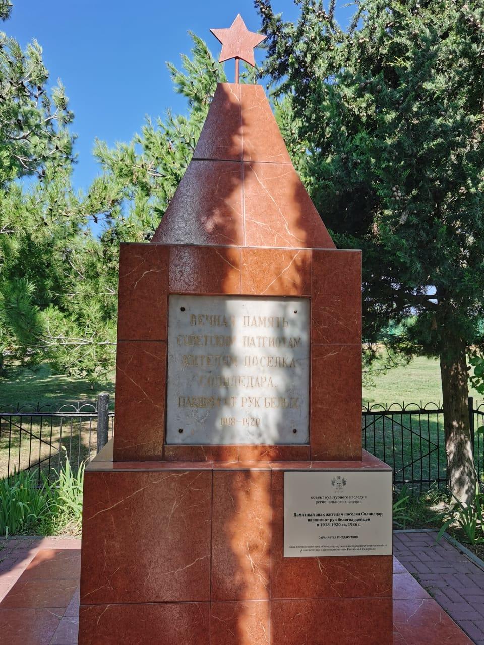 Сегодня на площади около 2 га высажено более 600 хвойных и лиственных деревьев, композиции из камней, разбиты цветочные клумбы. Помимо этого, в новом парке есть аллеи, высаженные ветеранами, представителями национальных общин и молодежью курорта. Аллеи ведут в центр, где установлен памятный знак в форме красной звезды на зеленой солдатской гимнастерке. На монумент, высота которого около 2 метров, нанесены слова «Никто не забыт, ничто не забыто».