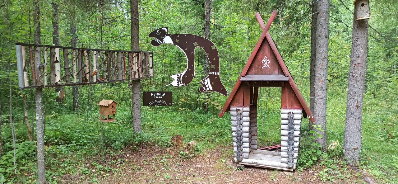 Основная цель парка, конечно, не развлечение проезжающих мимо туристов, а просвещение и продвижение бренда Коми в его различных проявлениях. Например, «Коми – родина российской промышленной нефти» и просто рассказ о Коми культуре. Поэтому основные объекты – это конгресс-холл и гостиничная инфраструкртура. И уже затем стали добавляться заманушки для празднопутешествующих. Одна из них – это тропа охотника. Она огранизована как «игра по станциям», если кто-нибудь помнит этот термин с советских времен, то есть при продвижении по тропе ребята останавливаются у каждого зверя и выполняют задания – кидать мячики в цель, куда-нибудь залезть, перелезть и прочее. Ближе к концу тропы есть небольшая лосиная ферма.