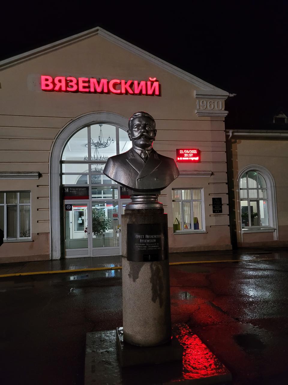 На станции Вяземская поезда, как правило, стоят не более 15 минут. Но этого достаточно, чтобы прогуляться по площади у вокзала, посетить и осмотреть бюст человека, в честь которого назван поселок и станция.