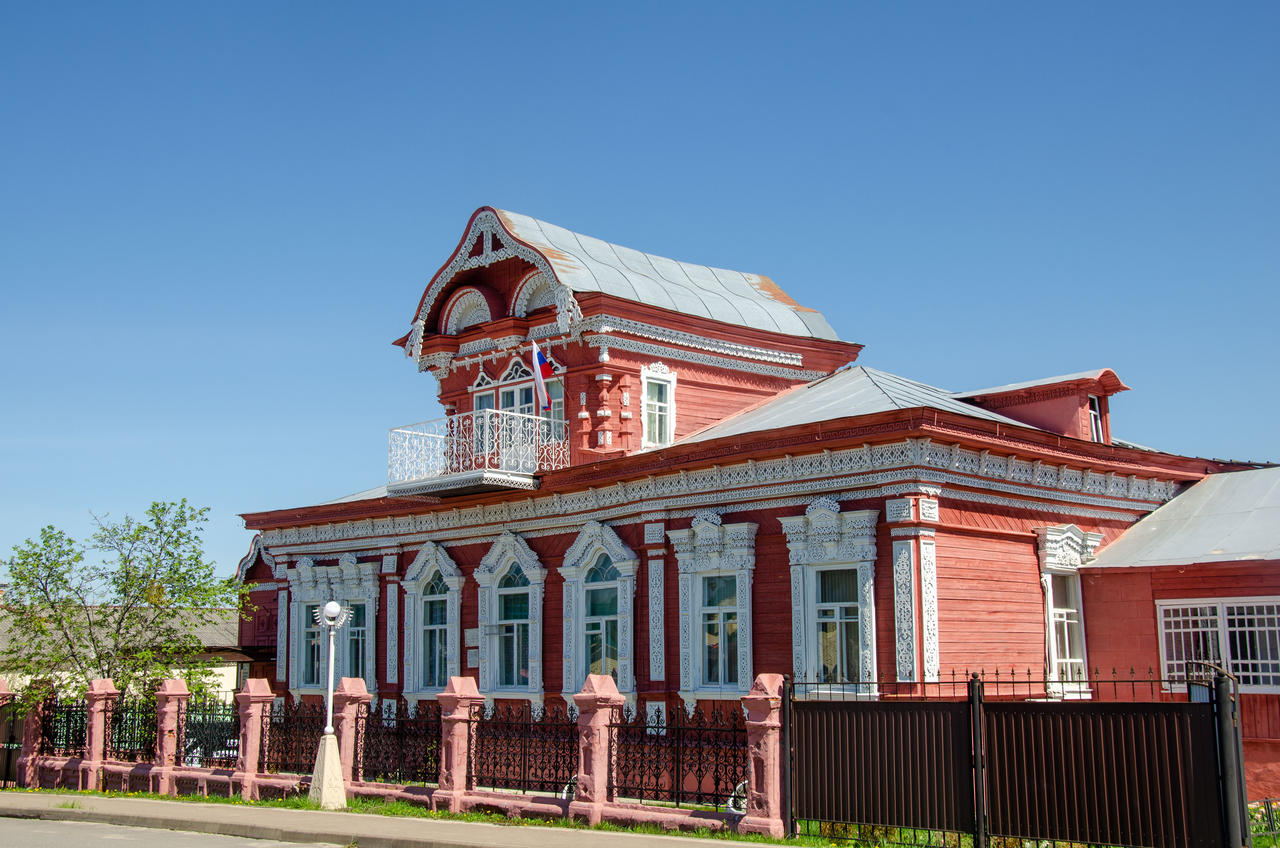 В первую очередь впечатляют резные деревянные терема, например, здание школы искусств, лесхоза, администрации.