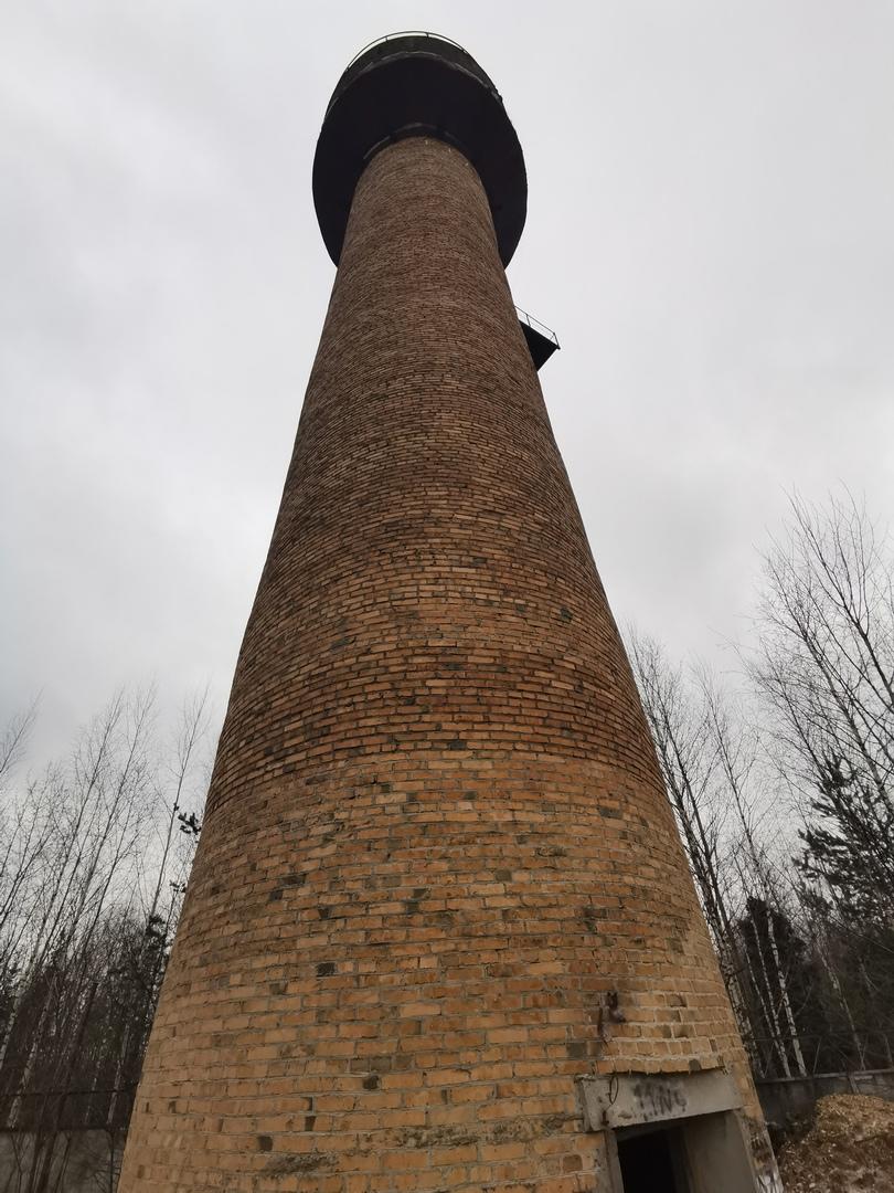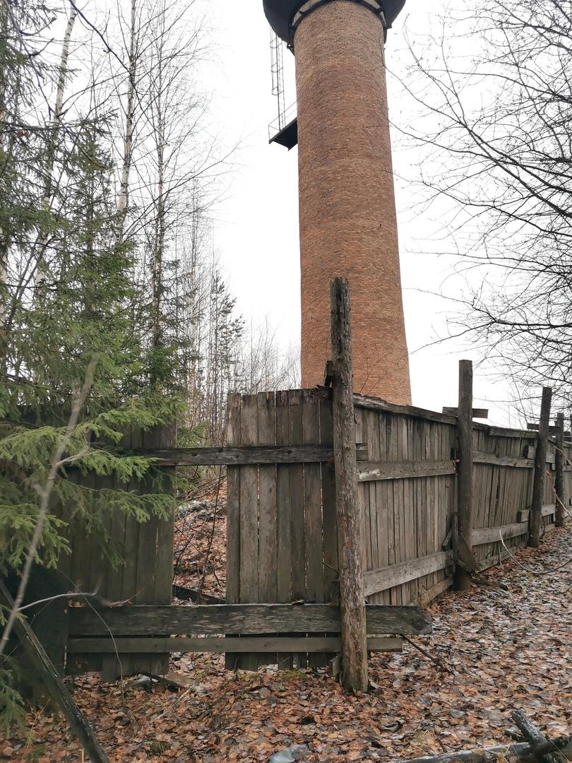 Водонапорная башня находится в местечке Човью. Её высота - около 18 метров, сверху открывается вид на постройки.