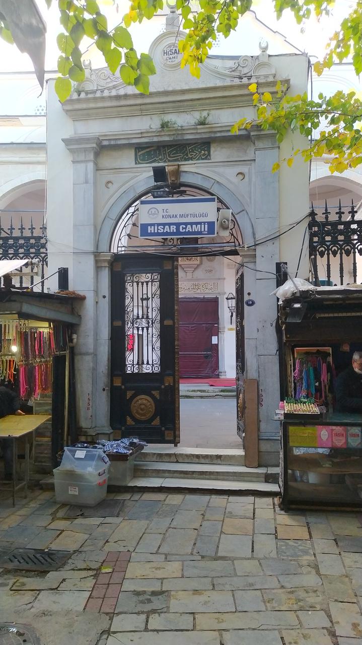 На площади Хисар стоит мечеть Хисар Камии, что означает "Мечеть форта" или мечеть Хисароню (Хисароню Камии). В старинных письменных документах она упоминается как мечеть Молла Якуп. Она сохранилась пройдя через многочисленные землетрясения и пожары. Это наибольшая и самая древняя мечеть Измира. Название мечети связано с ее расположением на месте древней византийской крепости. Ее строительство датируется концом XVI столетия, официальные документы свидетельствуют о периоде 1592-1598 годов. Было зарегистрировано, что она была построена Айдыноглу Якуп-беем. На восемь колонн по краям четырехугольного молитвенного зала опирается огромный купол. Его окружают еще несколько более мелких куполов. С обеих сторон главного купола располагаются еще шесть больших куполов. Часть пристроек, ведущих к главному молитвенному залу, покрывают девять маленьких куполов. Они придают мечети оригинальности, да еще и визуально увеличивают внутренние размеры здания. Внутри также есть маленькие бассейны для омовения перед молитвой и один минарет с балконом. Наличие одного минарета отличает измирские мечети от стамбульских. Над входными дверями мечети расположены каллиграфически исполненные надписи, цитирующие изречения из Корана.
