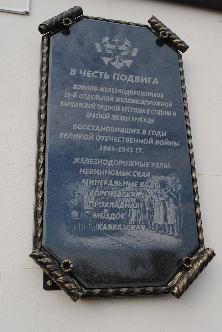 Начиная с марта 1918 по февраль 1920 года, станция неоднократно поочерёдно переходила из рук в руки «белых» и «красных» ополчений, неся большие обоюдные потери. В память об этих скорбных событиях на здании железнодорожного вокзала Невинномысска 17 марта 1977 года была установлена мемориальная доска. Станция Невинномысская причислена к объектам культурного наследия.