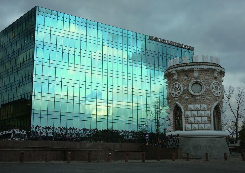 Предлагаю вам совершить небольшую прогулку по территории Делового центра Верейская Плаза, который был создан в 2004 году на месте бывшей промзоны в Западном Административном Округе на улице Верейская, 17. Тут можно посмотреть интересную современную архитектуру. Два корпуса – зеркальные, а другой как бы под старину, с разными архитектурными украшениями. Интересны 3 башенки, в которых размещаются КПП.