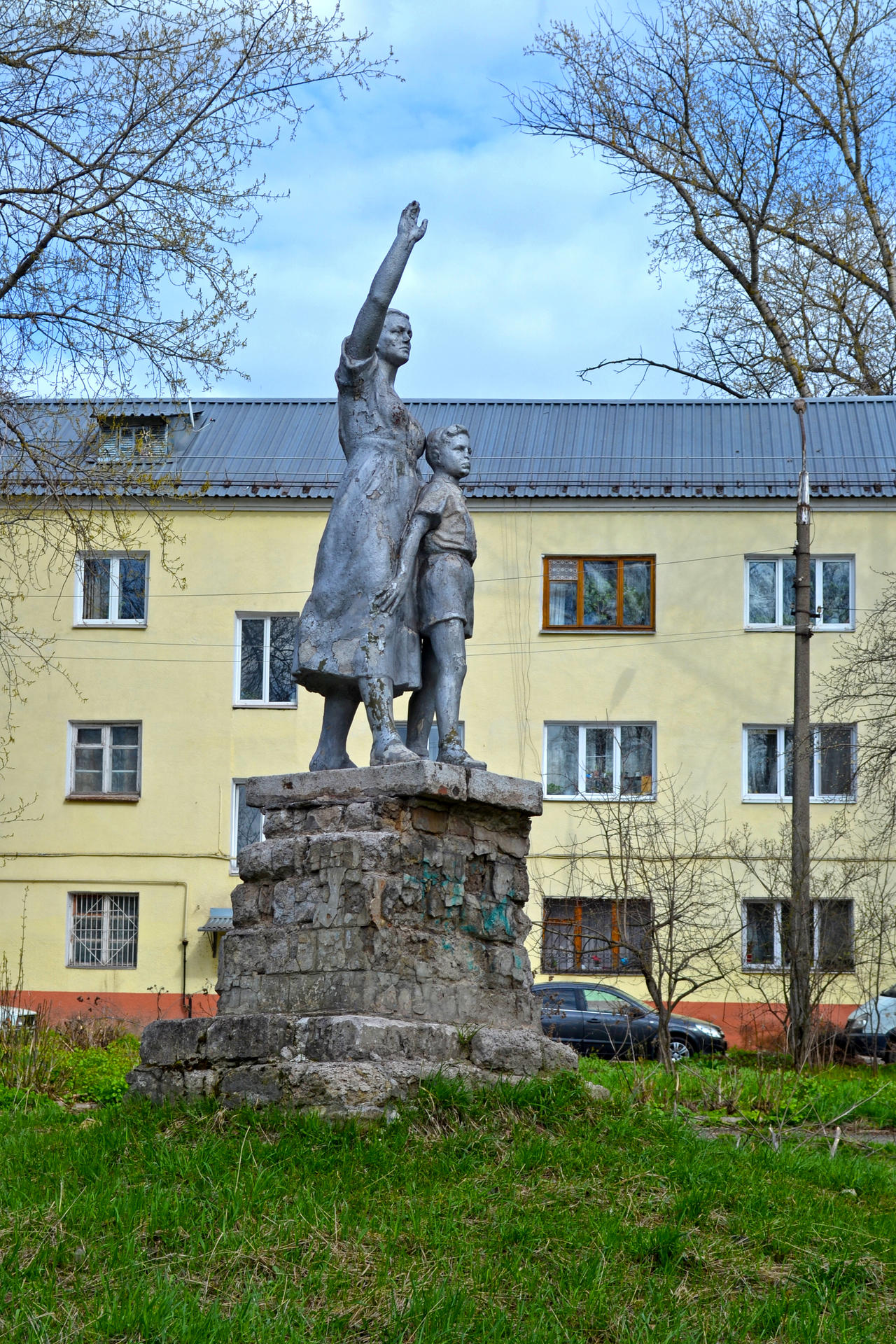 Когда видишь их, застывших среди суеты современного мира, в глубине старых дворов и скверов, на фоне неба с бегущими облаками, время слегка замедляет ход. Трогательное наследие эпохи СССР. Уникальное явление в советском искусстве. Уходящая натура. Во дворе дома №5 на ул. Металлургов, в небольшом скверике стоит скульптура Встречающие. Это часть типового сюжета послевоенного гипсового реализма. Женщина с мальчиком машут невидимому мужчине с ребенком на плече, который оказался у проходных Комбайнового завода (не сохранился). Сейчас подобную скульптуру можно увидеть в поселке Центральный Суворовского района. Скверик у дома Металлургов, 5 раньше назывался Комсомольским, и вместо "Встречающих", его украшал генералиссимус И.В.Сталин. Женщина же с мальчиком находились около нынешнего дома Металлургов, 39 и встречали трамваи, шедшие мимо них по главной улице Криволучья. После решений XXII съезда КПСС памятники Сталину начали сносить по всей стране. Исчез и памятник вождю в Комсомольском сквере. На его место и перенесли "Встречающих". Скульптура сохранилась очень неплохо. Это один из немногих образцов гипсового соцреализма, дошедших до наших дней... (по материалам книги "Гипсовый соцреализм в Туле" В. Щербакова)