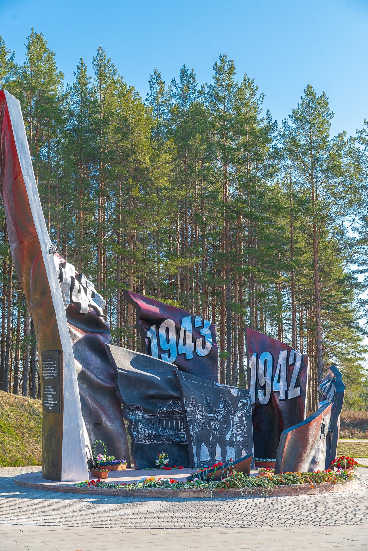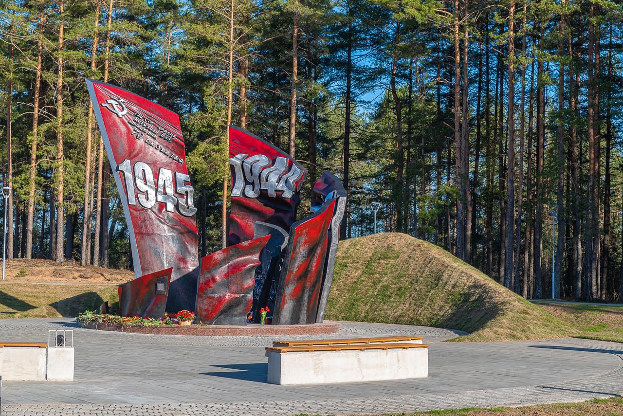 Рядом с трассой (N 56 21.131, E 028 51.816) воздвигнут монумент, посвященный Знамени Победы в Великой Отечественной войне 1941-1945 гг.