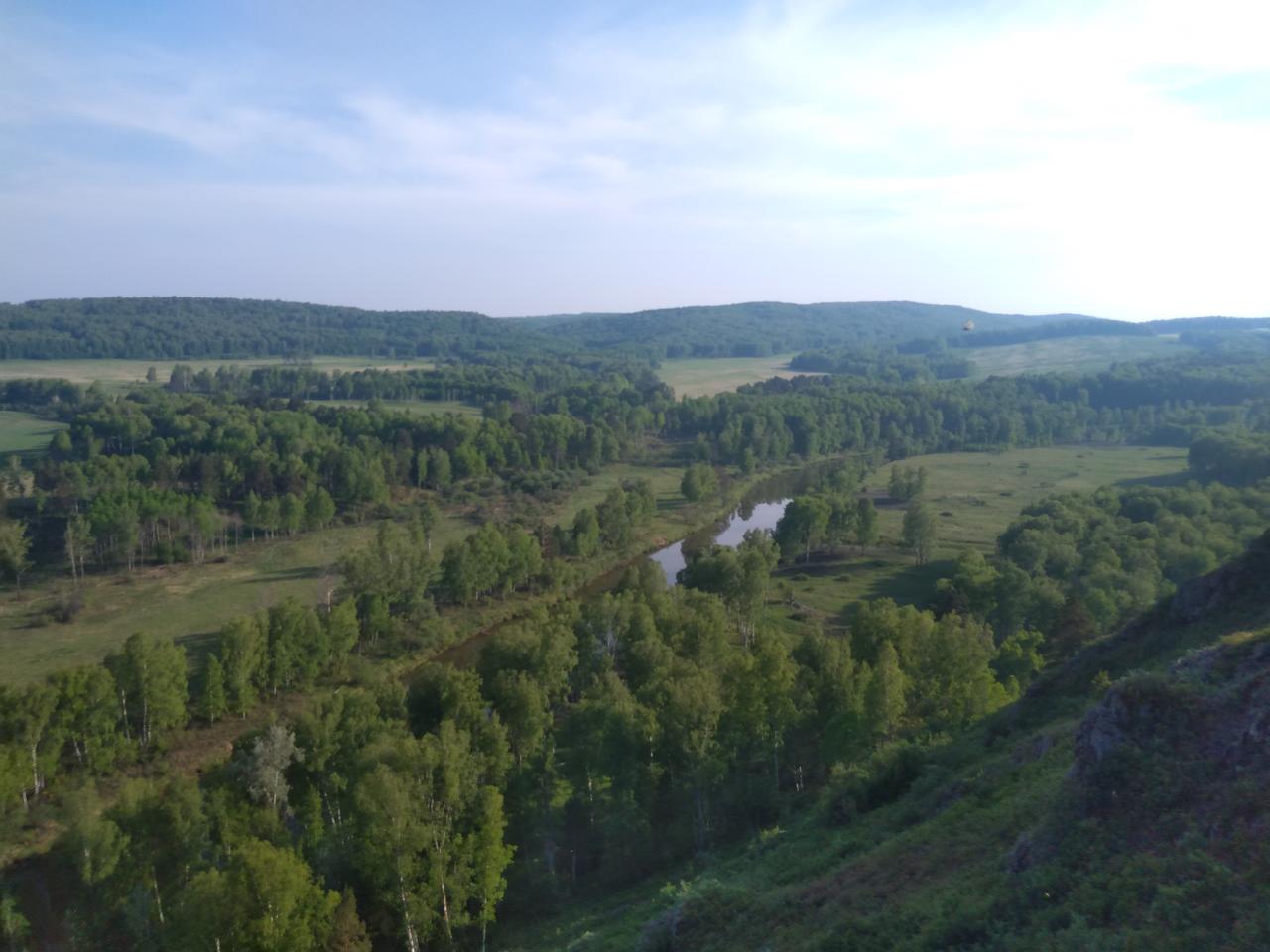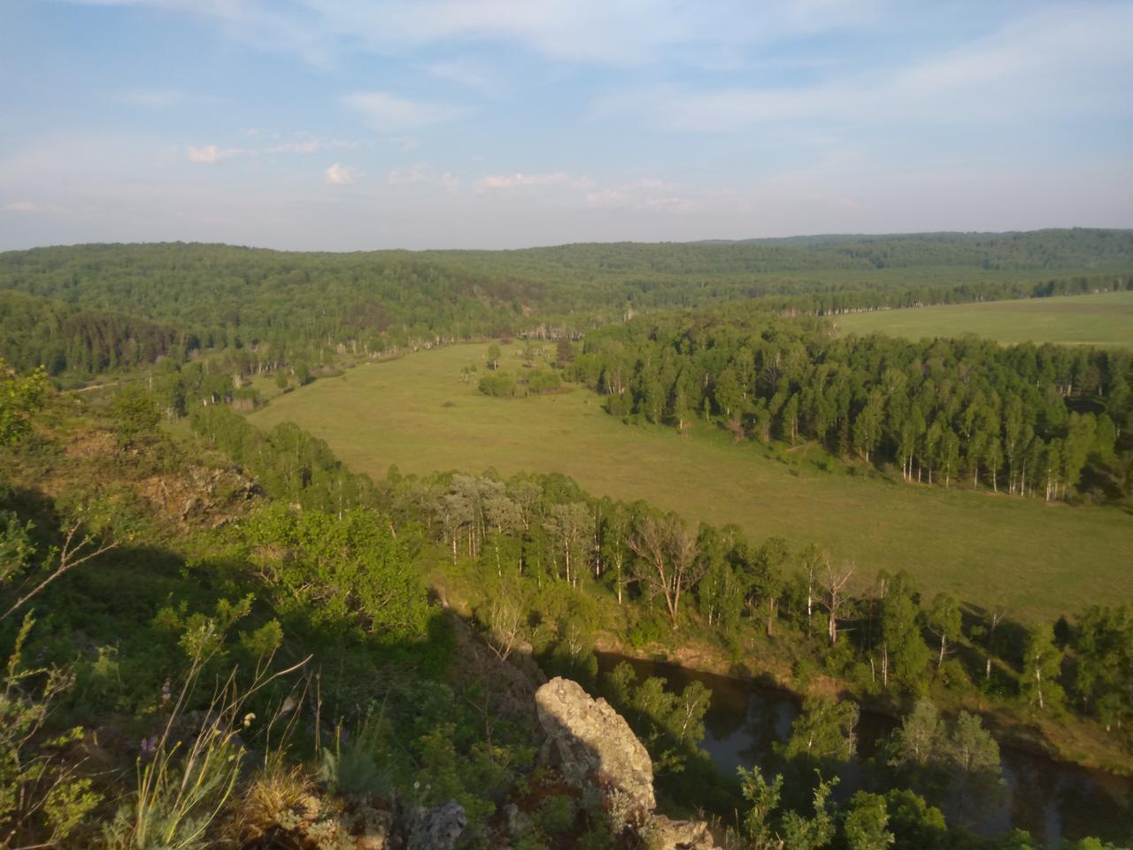После места, где заложен тайник, начинаются, на наш взгляд, самые живописные участки отрога, заканчивающиеся скалистым ступенчатым спуском в речную долину, где Бердь делает резкую петлю, обходя отроги.