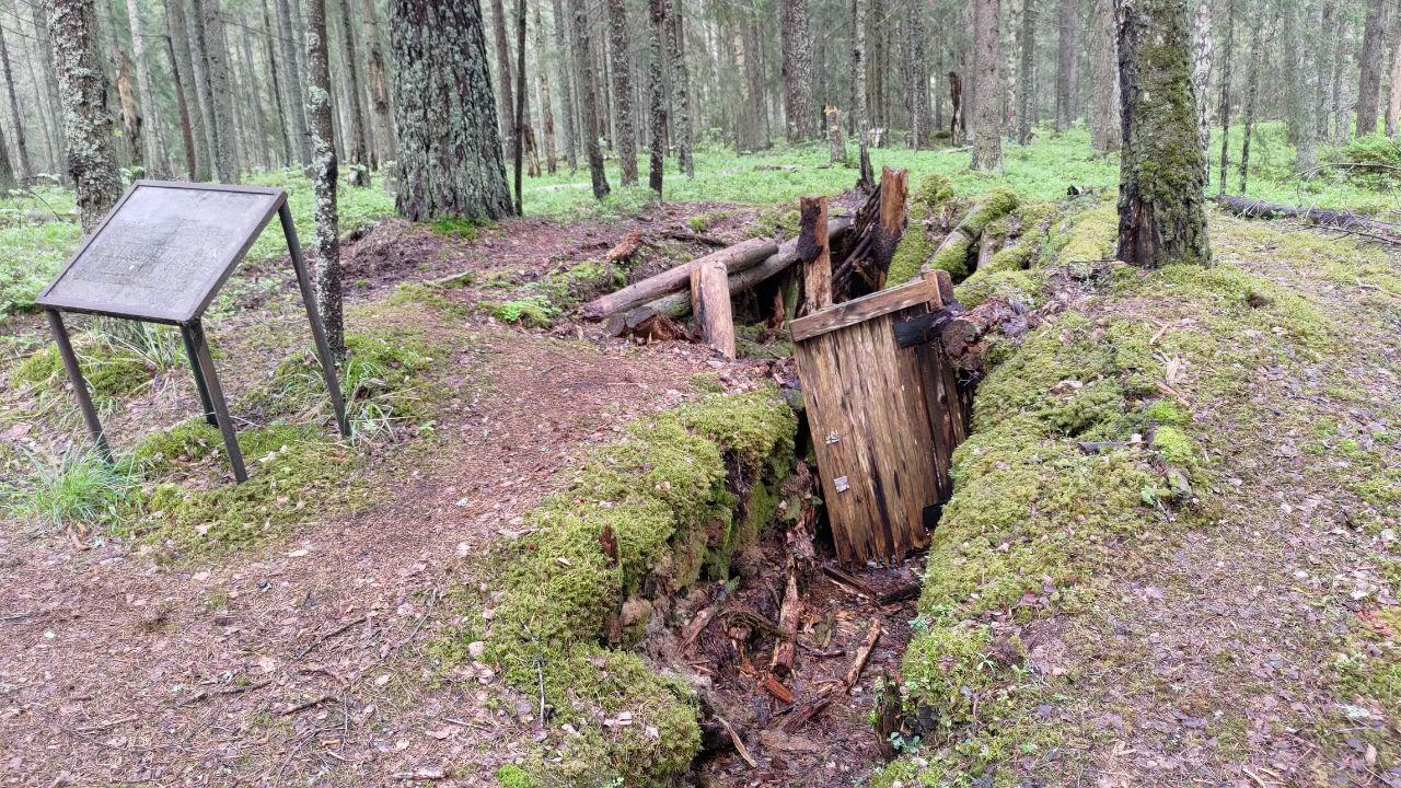 Даже если вы считаете себя равнодушным к хронике военных лет, тем не менее вам может быть интересно прочесть фактически записки тех людей, кто в 41-м ходил по тем тропам, которыми пойдём мы с вами, и кто жил в этих разрушенных землянках. Некоторые фамилии из этих записок можно увидеть на памятнике.