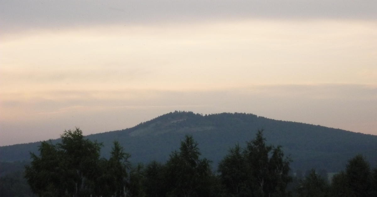 Эта двуглавая гора Копна, высотой 509,6 метров, возвышается в Кемеровской области.