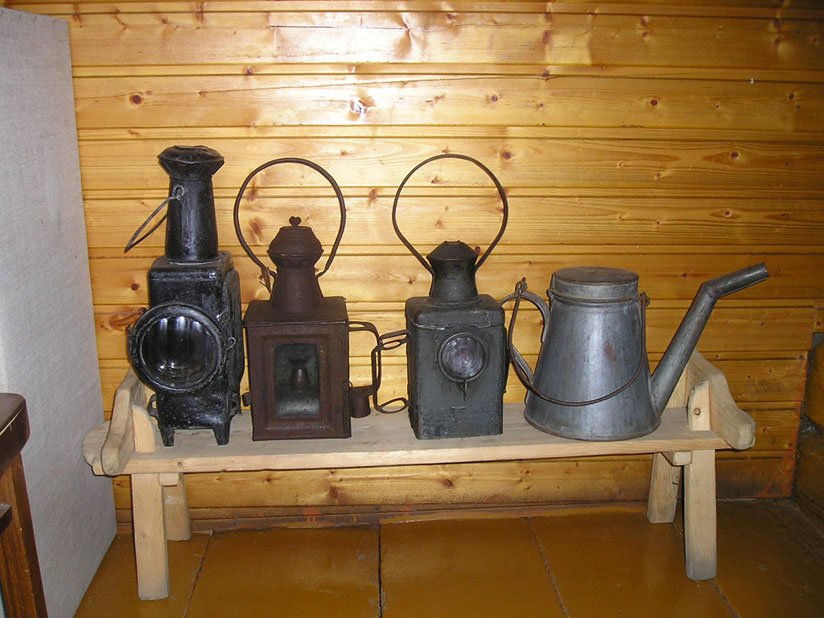 Как только мы подошли к маленькому деревянному домику с резными окошечками и березками вокруг, мы поняли: мы пришли по адресу. Как еще может выглядеть здание краеведческого музея в области, где каждый второй житель умеет вырезать по дереву? Аккуратно постучали в двери. Не дождавшись ответа, вошли внутрь (на севере принято входить в маленький коридор – (неопушенное крыльцо называется), а уж потом звать хозяев). Едва мы переступили порог, как увидели коллекцию старинных фонарей, борона, весы-безмены и многие другие старинные вещи. Вот так, домик-то под музей уже маловат – коллекция не помещается в основных помещениях. Ну а всего в музее три зала, не считая крыльца. Два зала – постоянно действующие экспозиции. В одном из них представлены вещи быта – светцы кованные для лучин, самовары, посуда деревянная и берестяная. Тут можно увидеть образцы сосудов из бересты, сплетенные тройным плетением. В них можно наливать даже воду. «Нынче уж и нет мастеров таких, кто может такое плетение повторить» - с сожалением объяснила смотритель музея Надежда Федоровна. В другом зале – иконы (действительно древние, с очень необычным изображением святых – не каноническим, а живым, художественным). Тут же – необычные часы, трость волшебная, якобы совершившая путешествие в Иерусалим, одежда (даже сапожки и туфельки), традиционная для жителей этого района ранее и фисгармония – настоящая!