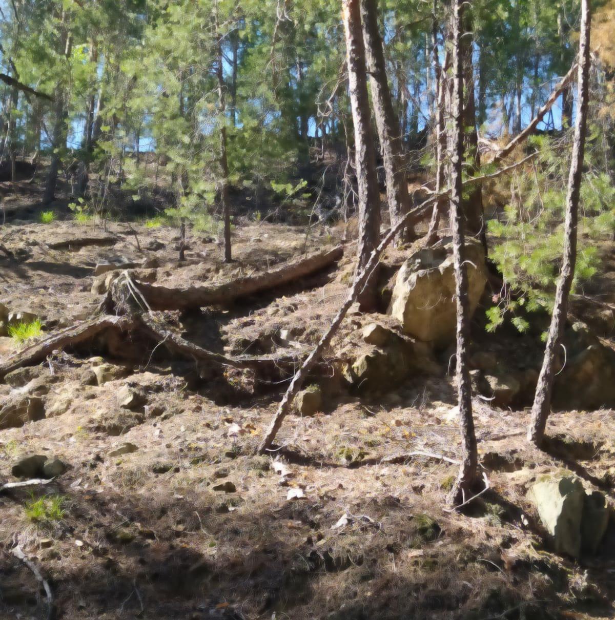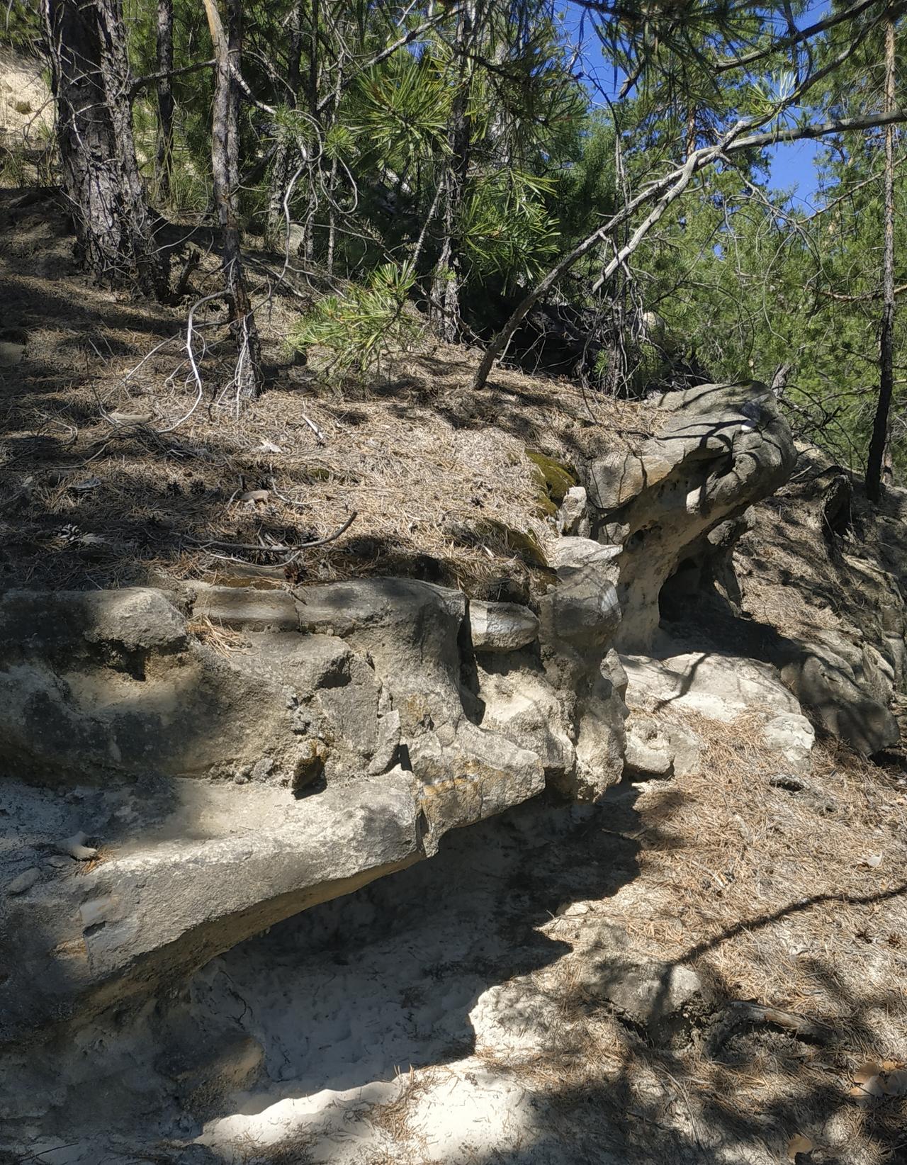 После посещения Рачейских скал было огромное желание найти в Пензенской области такую же красоту. И вот, проезжая по трассе Шемышейка – Лопатино, увидели песчаный склон. Решили - нам туда надо!!! После посещения Лопатино выехали в сторону Русского Камешкира. Проехав немного, мы по указателю свернули на Ивановку, в которой увидели разрушенный храм. Но останавливаться не стали около него и поехали дальше в сторону Малой Багреевки. И вот мы оказались у подножия песчаного склона, увиденного издалека. Оставив машину у подножия возвышенности, поднялись по склону и увидели скальные остатки причудливых форм.