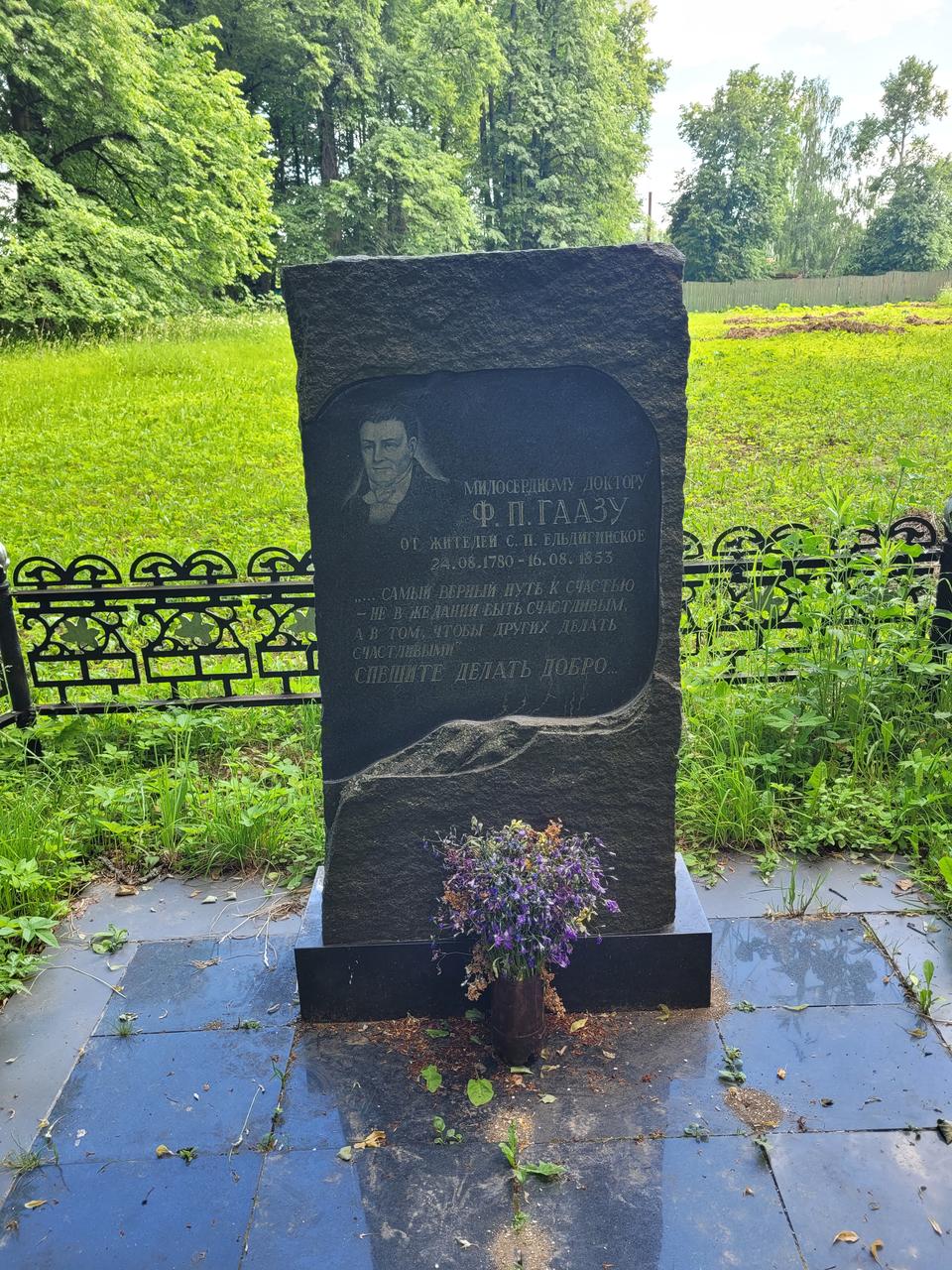 Местная администрация установила в парке красивый мостик, который направляет идущего по нему к тропе, местами посыпанной гравием, ведущей к памятной плите, установленной в честь доктора Федора Петровича Гааза. К этому месту ведут практически все тропы парка, причем это не специально установленные тропинки, это именно «народные тропы», протоптанные теми, кто приходит сюда, чтобы почтить память «Святого доктора», который говорил: «Торопитесь делать добро, умейте прощать, желайте примирения, побеждайте зло добром, не стесняйтесь малыми размерами помощи, в том или другом случае, пусть она выразится в подаче стакана воды, утешения, сочувствия, сострадания, и то хорошо».