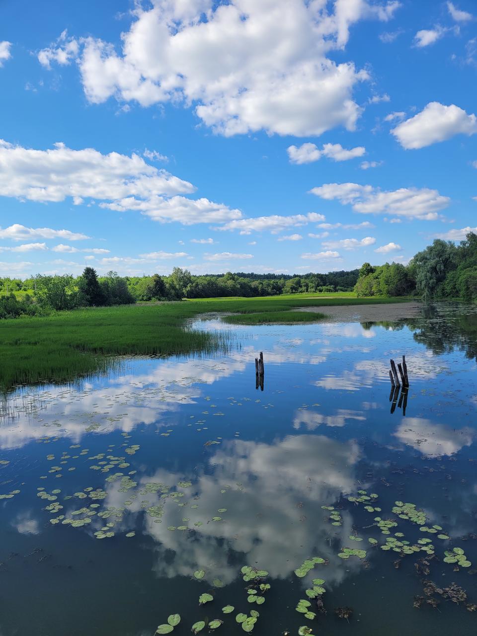 Стоя среди этих деревьев-великанов и глядя на виднеющуюся внизу речку, можно представить и въездные ворота, и парковые аллеи, которые еще можно увидеть, а в некоторых местах сохранились мостки водоотводных каналов, которые во время войны служили укрытием от немецких снарядов.