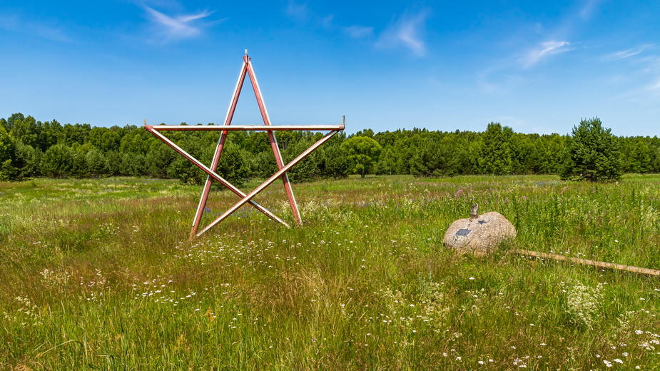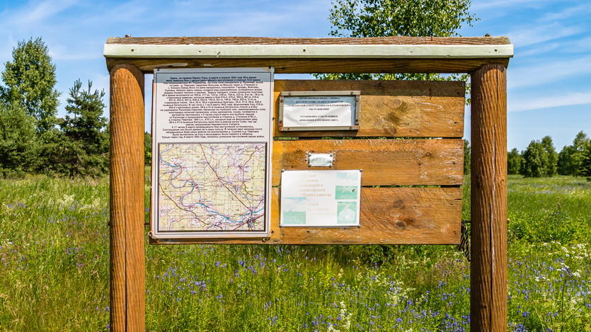 Так написано на информационном стенде в урочище Русиново. Сейчас это довольно глухое и малопосещаемое место, в которое ведут не самые лучшие лесные и полевые дороги. На месте бывшей деревни небольшой мемориальный комплекс, утопающий в траве, где можно нарушить тишину этих мест звоном небольшого колокола. Рядом есть официальные оборудованные стоянки на Угре, теперь там поют птички, стрекочут кузнечики, жужжат пчёлы и главное, не гремят взрывы...