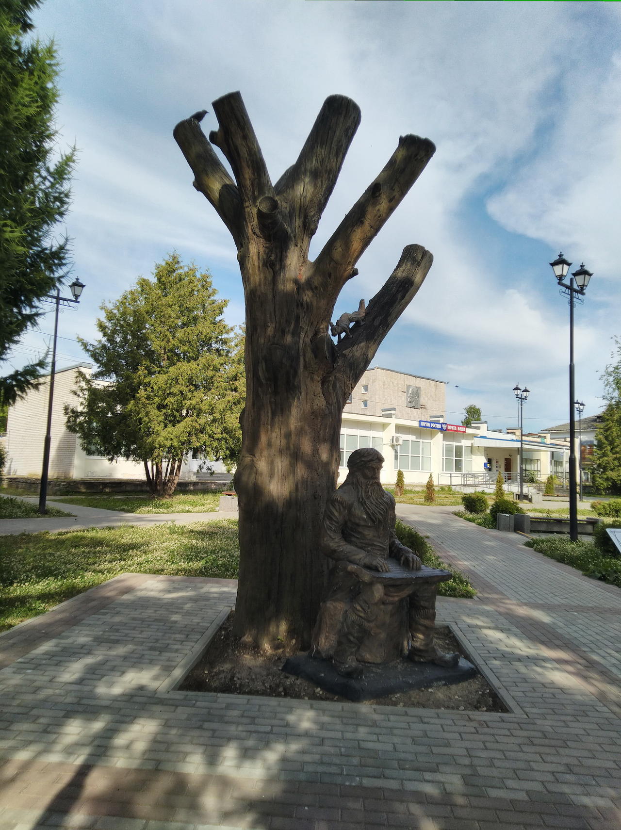 Могучее древо, под которым сидит рунопевец, также не случайно - оно напоминает о легендарной сосне Лённрота, росшей некогда на родине карел. Предание гласит, что именно под этой сосной финский врач и путешественник Элиас Лённрот записывал руны древнего северного эпоса «Калевала».