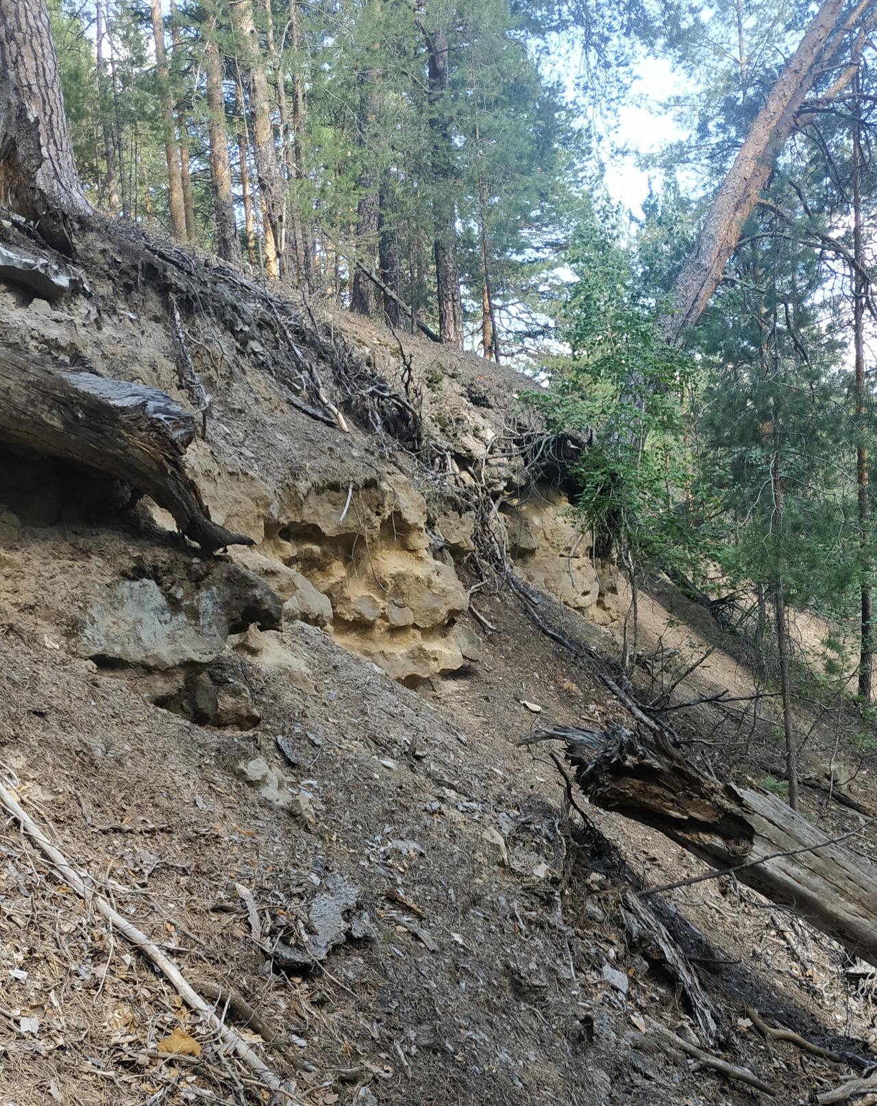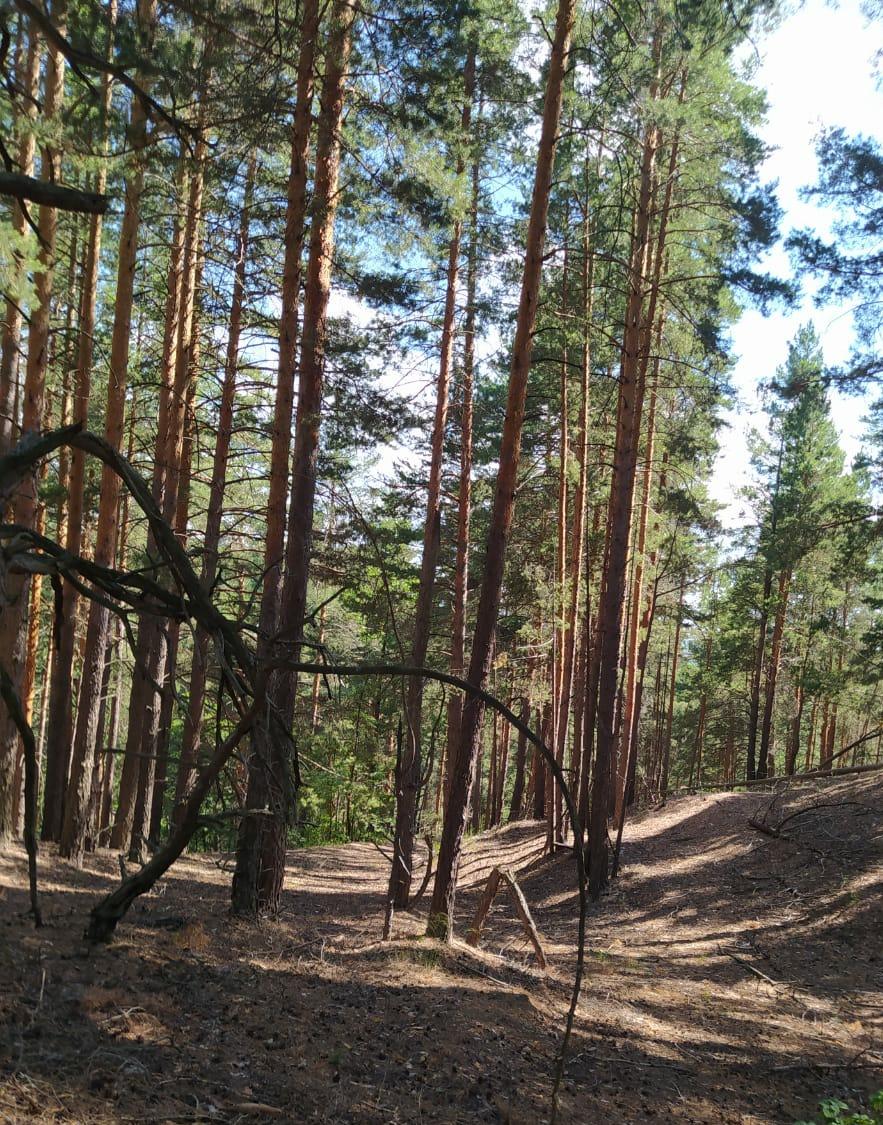 Распадок – одно из объяснений этого слова обозначает : маленькая ложбина, а также боковая долина, выходящая в главную. Проезжая вдоль реки Уза, распадок привлек наше внимание тем. что в лес уходила тропа. Двигаясь по тропе, поднялись на площадку в лесу. Похоже, что посетители здесь бывают нередко, заметны тропинки. Нигде не встречали сосновые кусты, здесь их несколько. На другом склоне открываются валуны необычной формы. Есть небольшой хребет со следами присутствия косуль. Очень позитивное место. Сосновый воздух опьяняет, песок блестит на ярком солнышке. Предлагаем прогуляться по верхней части.