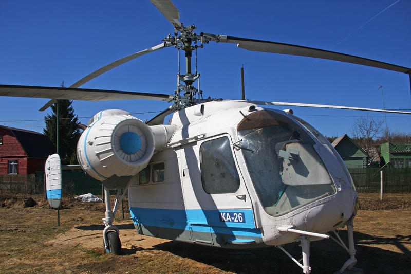 Ка-26 с регистрационным номером СССР-26184 совершил первый полет еще 17.01.1972. В мае 75-го года участвовал в выставке в Ле Бурже. В 1978 году был представлен на авиасалоне в Соутгемптоне. Позже долгое время хранился на территории Камовского завода в московской области. Откуда, похоже, и попал сюда. Ми-34 тоже полноценная машина, без нанесенных регистрационных знаков. На этих машинах поставлено множество мировых рекордов.