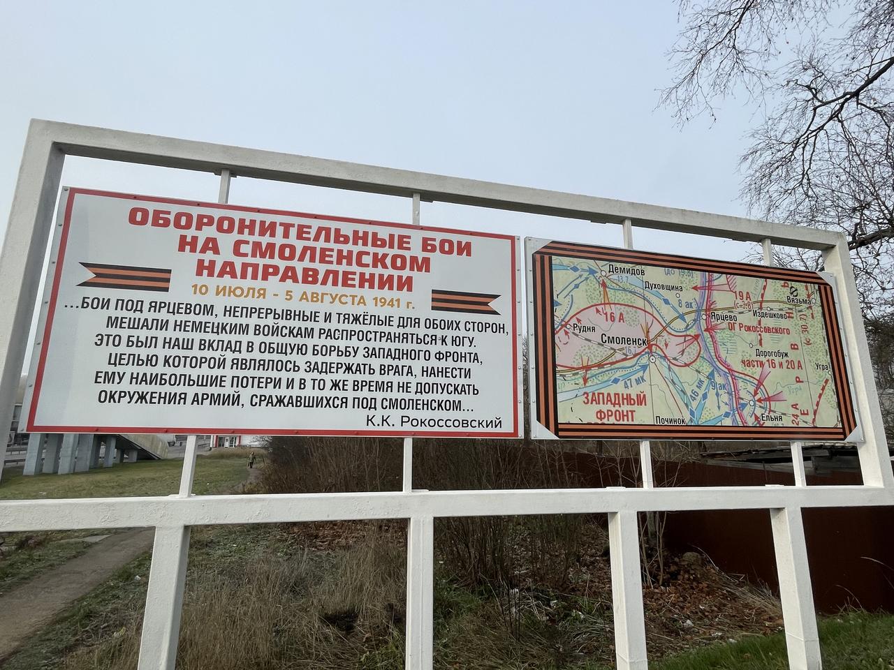 Теперь что касается стенда. Д.Сатанов: «Конечная дата почему-то стоит – 5 августа 1941 года. Т.О. несколько месяцев обороны на стенде не указано. На другом мемориальном комплексе Ярцево, на реке Вопь четко указаны даты оборонительного сражения. До начала октября 1941 года. До того момента, когда немцы начали операцию «Тайфун» - 5 октября».
