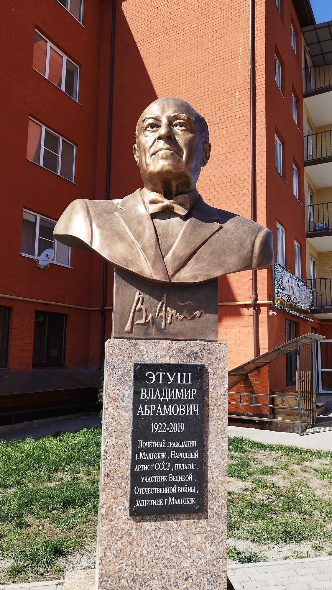 «В преддверии Дня Победы в городе воинской славы на одноименной улице состоялось открытие бюста народному артисту СССР, актеру театра и кино, защитнику и почетному гражданину Малгобека Владимиру Абрамовичу Этушу. Почетное право открытия бюста было предоставлено заместителю председателя правительства Республики Ингушетия Марем Амриевой и мэру Малгобека Муссе Галаеву. Мероприятие прошло в теплой и неформальной обстановке, было сказано много трогательных слов о Владимире Абрамовиче», — сообщал ТАСС со ссылкой на пресс-службу мэрии города.