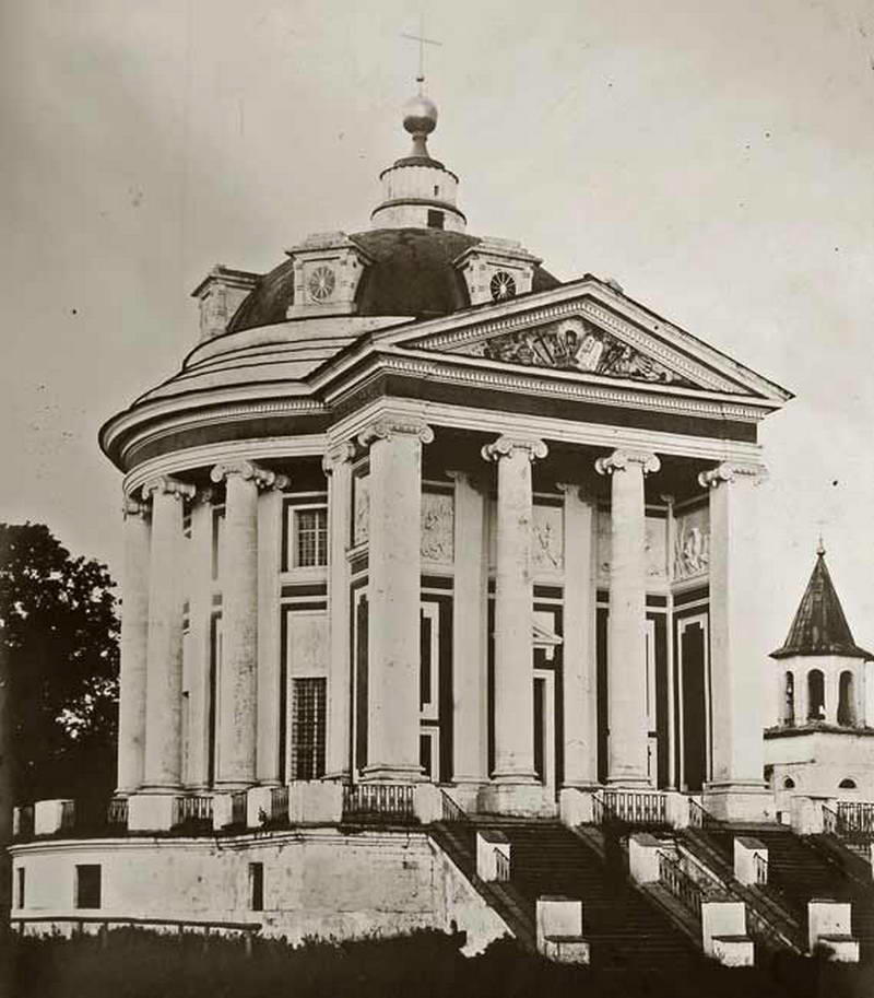 В 1930-е гг. по всей стране развернулась варварская борьба с религией, во время которой были разорены тысячи русских церквей. Пострадало и Николо-Погорелое – Покровский приходской храм был полуразрушен, не лучше была участь и храма-усыпальницы Барышниковых. Известный историк архитектуры М.А. Ильин, изучавший казаковский шедевр, побывал в селе в последний раз в 1939 г. Он вспоминал: «По-прежнему великое произведение Казакова торжественно возносилось над Днепром. Но какая мерзость запустения царила вокруг и внутри этого здания редкой красоты. Действовавшая в первый мой приезд церковь, конечно, была закрыта, а потому все, что можно было сломать и изгадить, было уничтожено, поломано или безвозвратно исчезло. Решетки на лестницах и вокруг наружной террасы были в большинстве выломаны, покрывавшее ее кровельное железо содрано, двери стояли открытыми, без запоров, иконостас был поломан…»